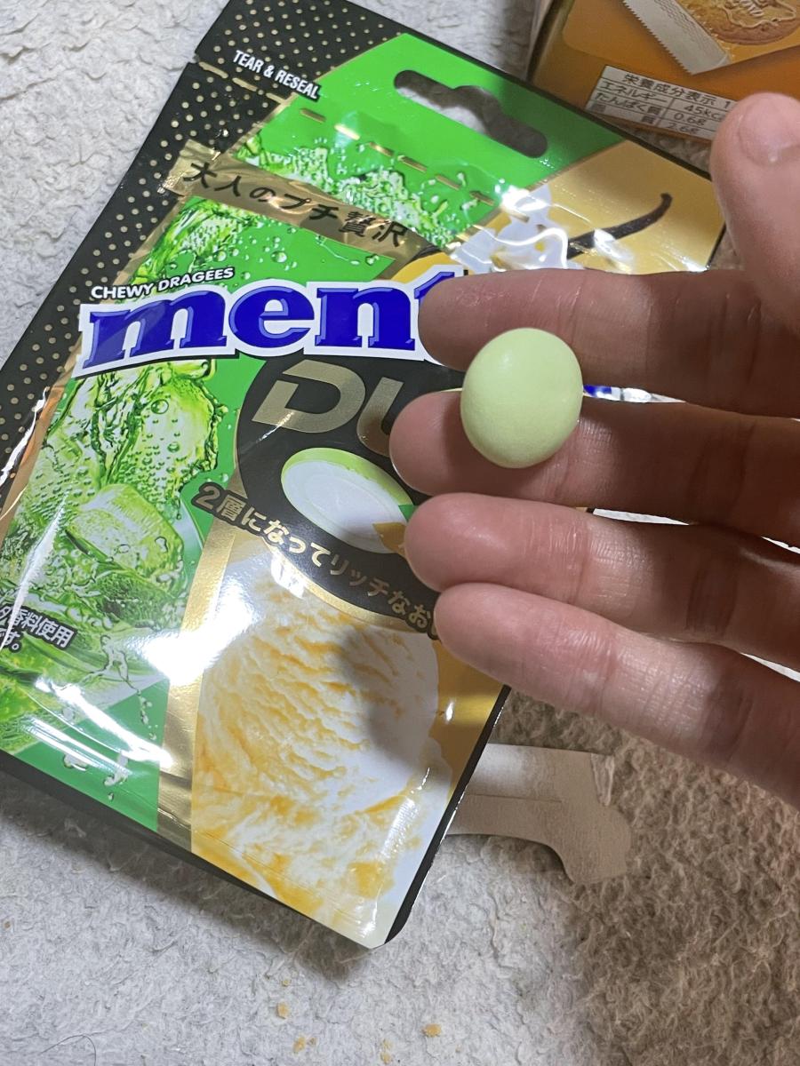 メロンソーダとバニラの組み合わせでどんな味だろうと興味津々でかってみました。食べてみると今までのメントスとはひとあじ違うなと感じました。大人のプチ贅沢というのも納得です。二つの味が2層になっていて贅沢な味わいだなと思いました。