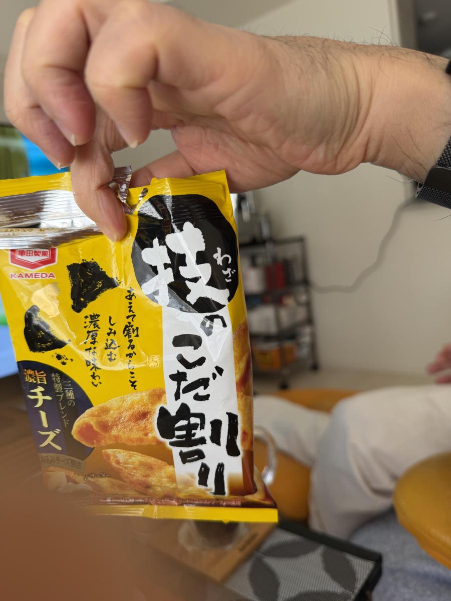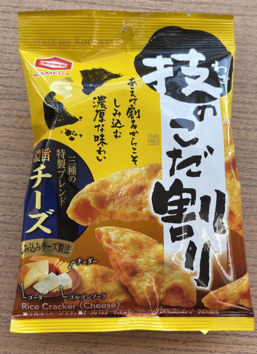 チーズおかきが好きなので、技のこだ割りの濃厚チーズ味に一層期待して買ってみました。期待した濃厚まではありませんが、無難に美味しいチーズ味の厚焼き煎餅でした。