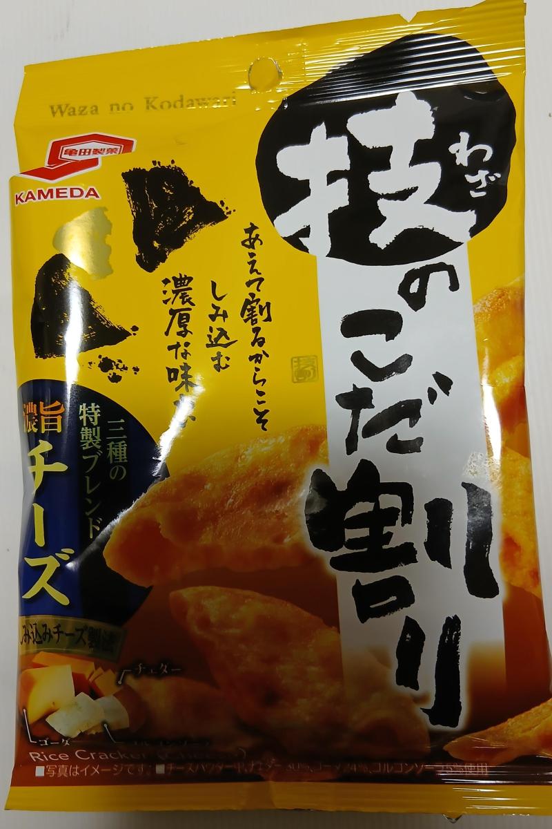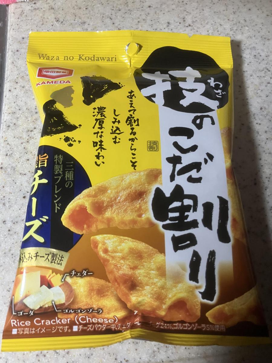 技のこだ割りにチーズ味が出ているのが気になり購入してみました。パリパリ堅めのお煎餅が歯ごたえがあり病みつきになる食感です。歯ごたえの良い堅めのお煎餅に濃厚な3種のチーズパウダーがかかっており、チーズ好きにはぴったりな味わいでした。おつまみにもぴったりだと思います。また買いたいなと思いました。