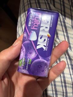 フィルムを開ける前からジューシーな香りは強いです。たしかにフリスクネオのグレープより清涼感が控えられてラムネ感があります。