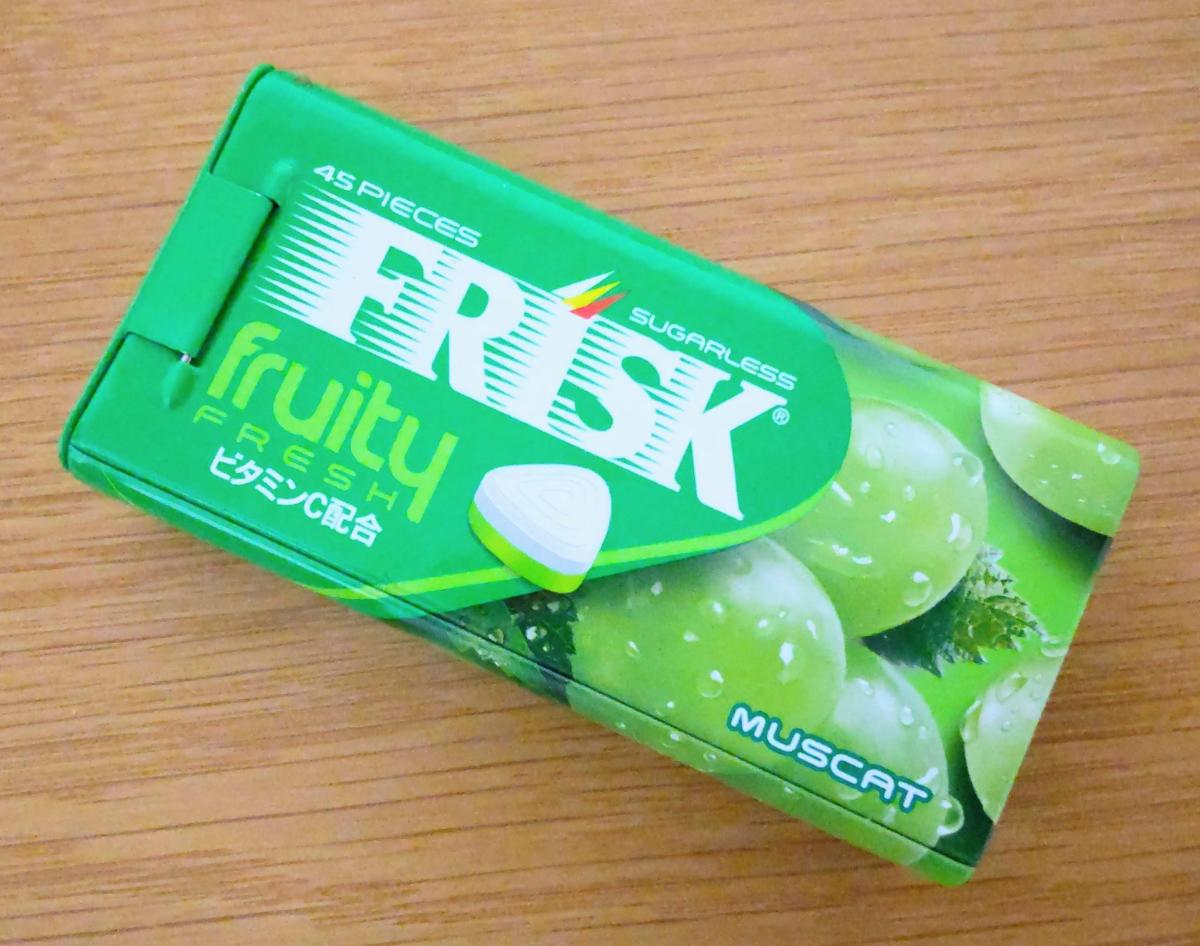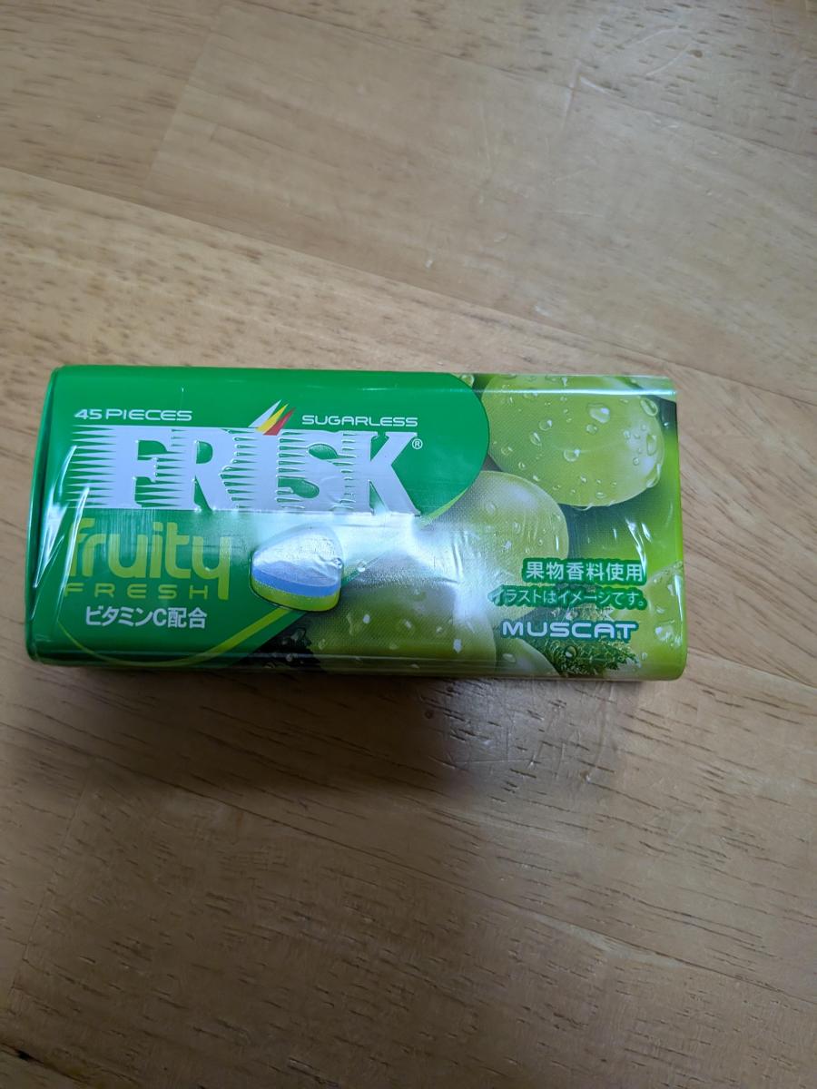 フリスクはもとからミントも甘いですが、マスカットとなるとさらに甘くなり、おいしく口のエチケットができますが、もっと清涼感があってもいいと思います。