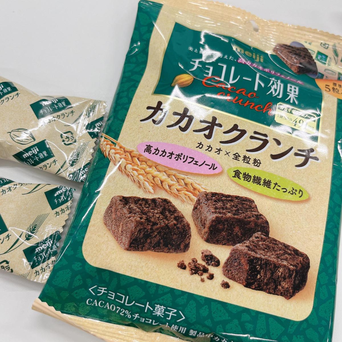 カカオのほどよい苦味が美味しいチョコレート効果のクランチタイプです。チョコの美味しさはそのままですが、ザクザクした食感があり食べ応えあります。