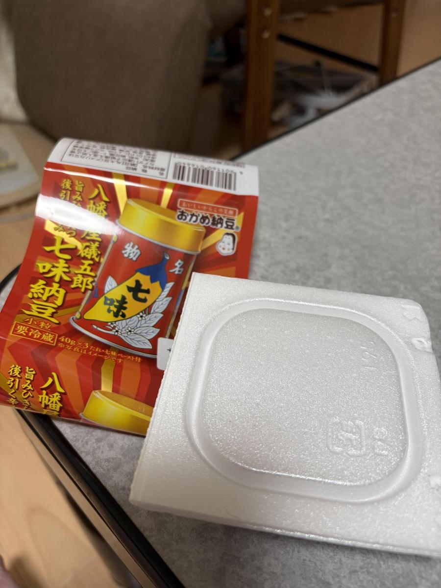 七味唐辛子が粉末で入っているかなと思いきや、七味がペースト状になっています。思っていたよりも辛めで、私的にはカラシの方がいいかなと思ってしまいました。ただアクセントにはなり、納豆の匂いは抑えられるかなと思います。