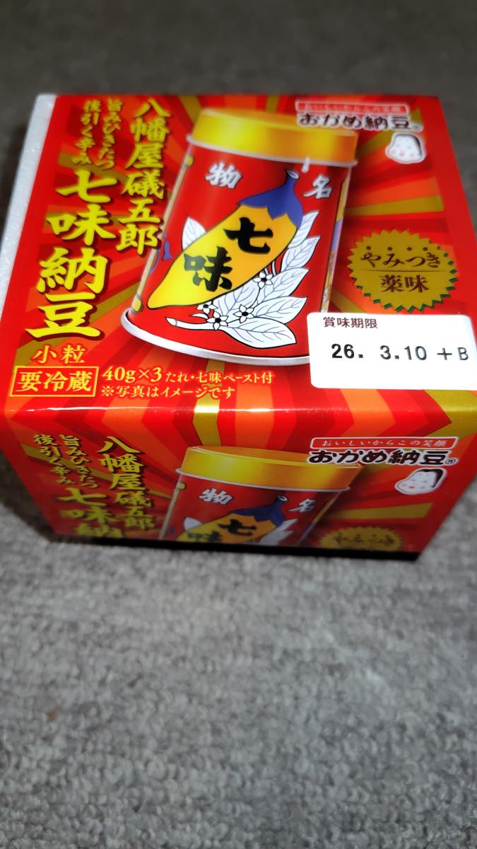 納豆にタレと七味ペーストがついています。自分で粉の七味を納豆にかけて食べる事がありますが、この七味ペーストはそれともまた違った味で美味しいです。この七味ペースト単体はそこそこ辛いですが、タレと合わせると辛さがだけでなく旨味が合わさって旨辛な味で美味しいです。