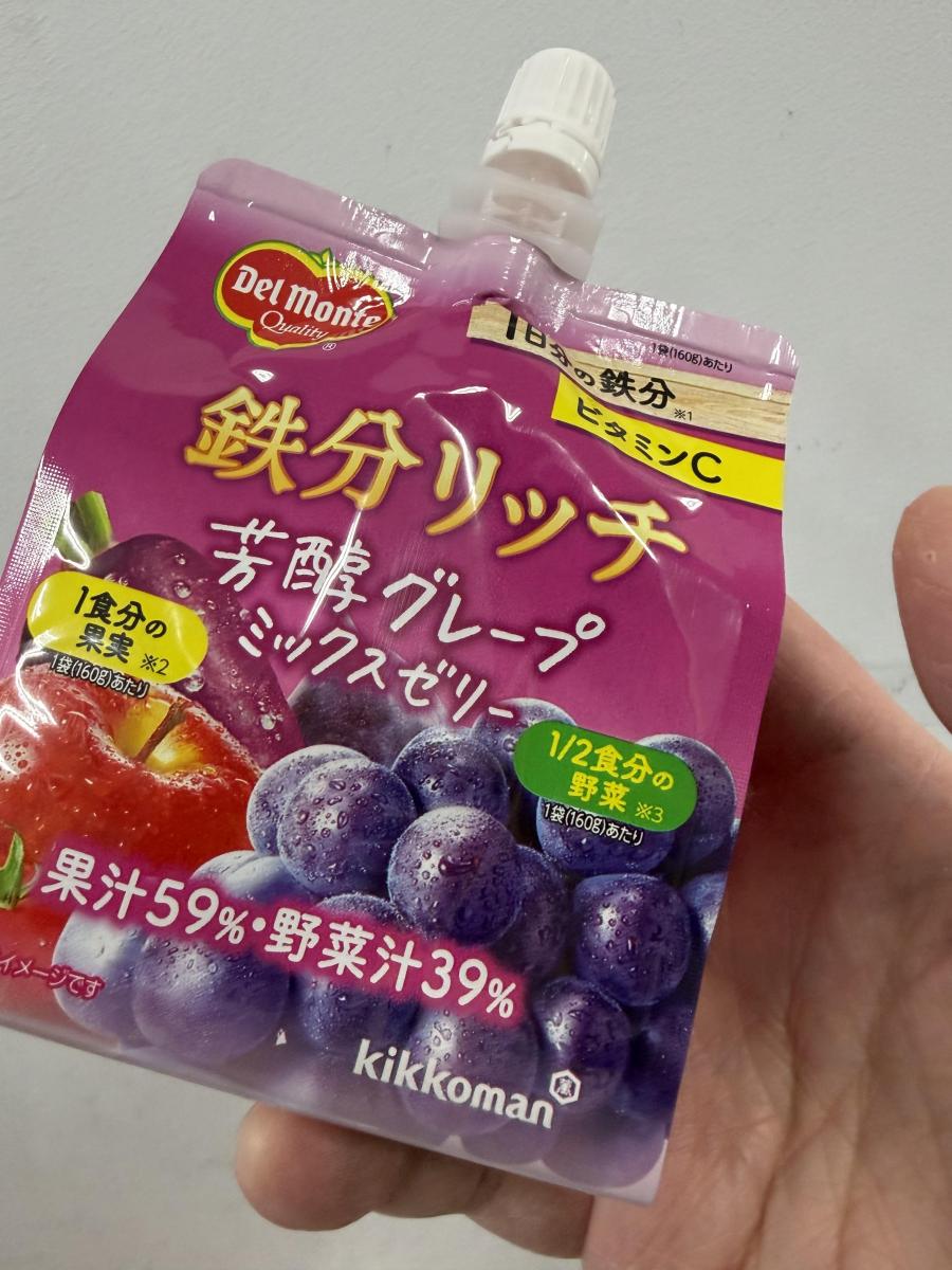 4割程度が野菜汁なのでどんな味かなと思いましたが、基本的には葡萄のゼリーなのかなと思いました。鉄分が摂れるというのも魅力なのだと思いますが、鉄強化に伴う味の崩れも感じられず、普通に美味しいです。量的にはスタンダードだと思いました。味だけ見ても悪くないですよ。