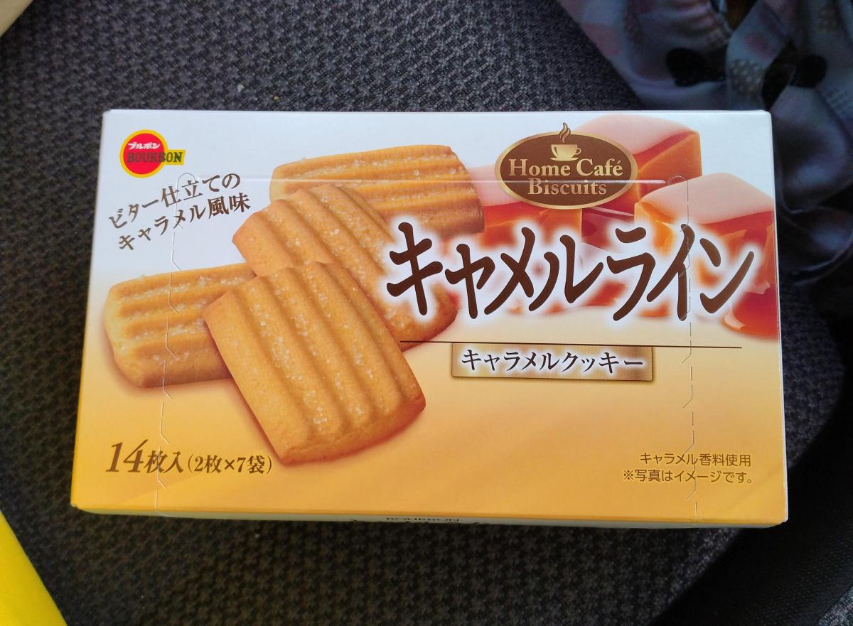 さくさくした軽い食感のおいしいキャラメル風味クッキーでした。長方形のクッキーの表面は数本の線が入っていて、ザラメがかかっていて、昔ながらのクッキーのデザインなのが素朴で気に入りました。キャラメル風味→キャメル、数本の線→ラインなんでしょうか。ラクダじゃないですよね。