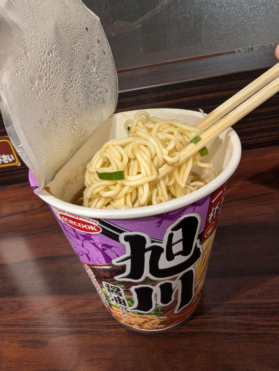 ご当地の一杯シリーズが並んでいて、旭川醤油ラーメンという商品が目に留まりました。