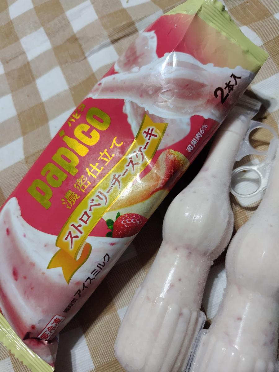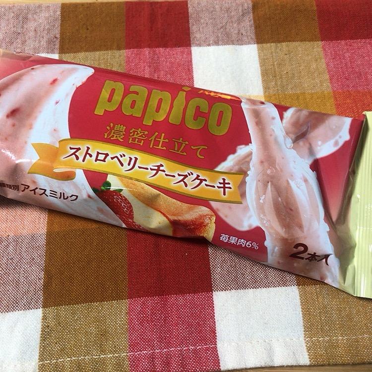 パピコ、普段あまり買いませんが、こちらはストロベリーチーズケーキという、すごく好みの味わいや美味しそうな写真に惹かれ購入しました。