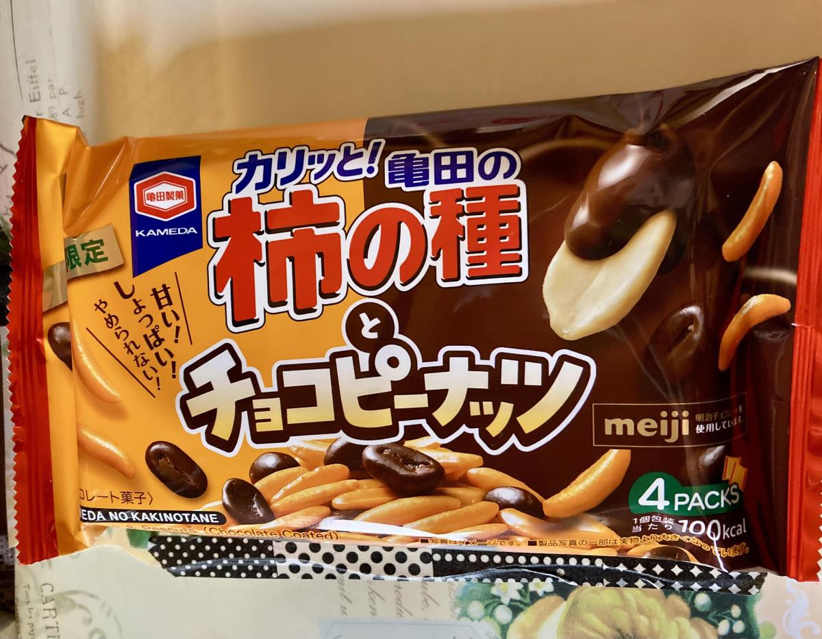 亀田の柿の種の、柿の種ではなくて、ピーナッツにチョコレートがかかっているものです。明治のチョコレートがかかっていて、間違いない美味しさ。柿の種のピリッと辛いのと、ピーナッツチョコの甘いので、甘じょっぱくて手が止まりませんでした。1袋をあっという間に食べてしまいました。