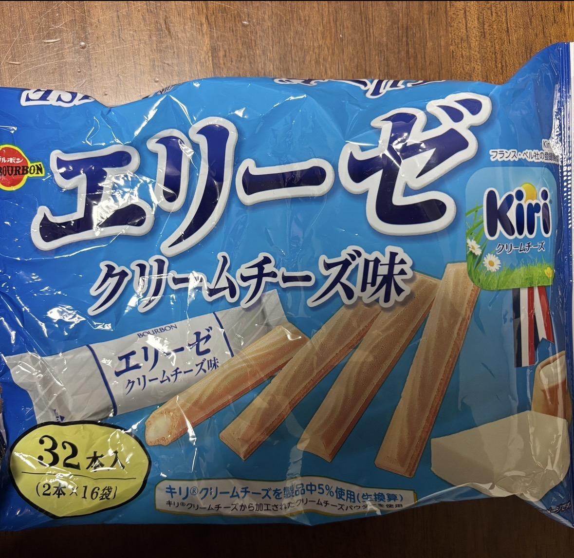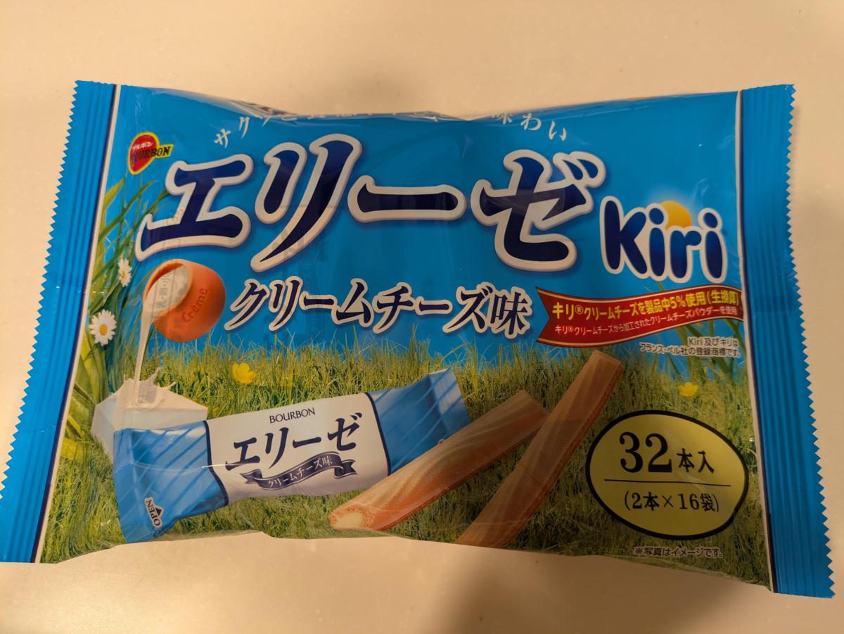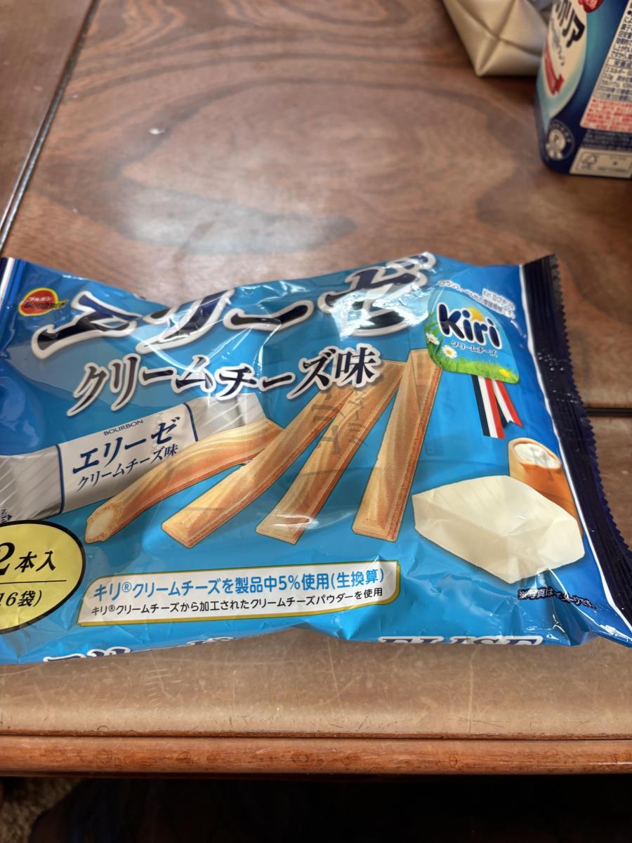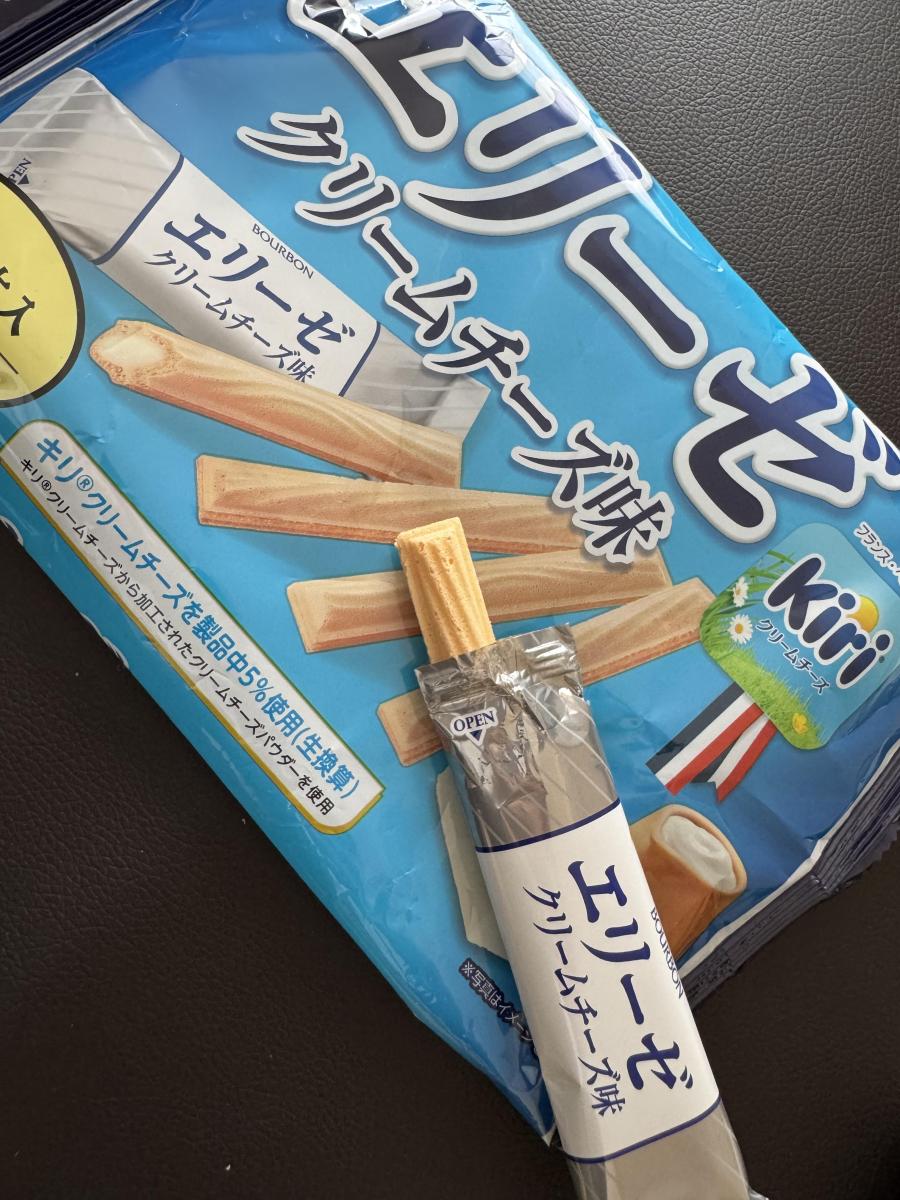 エリーゼの変わったフレーバーがあったので購入してみました。クリームチーズ味でkiriが5%使用されていると。食べてみるとクリームチーズの風味がします。外側のウエハースはパリパリです。クリームチーズはよく味わうと感じる程度です。塩味が効いているなと思いました。