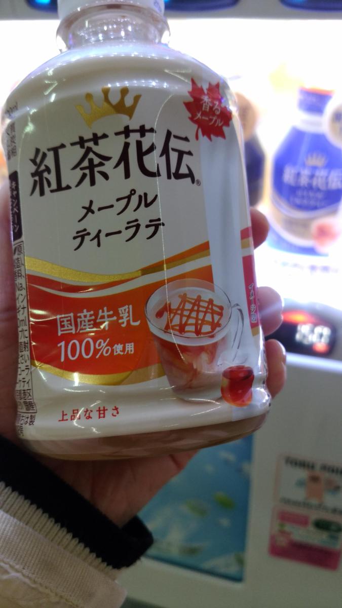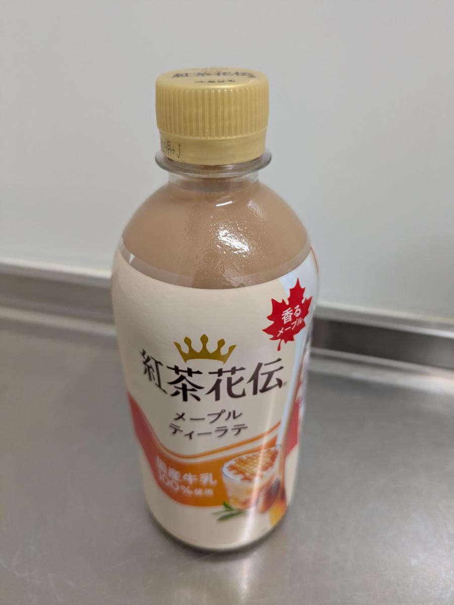 寒くなる季節にふさわしいメープル風味のミルクティー。国産牛乳100%使用という文字に惹かれました。