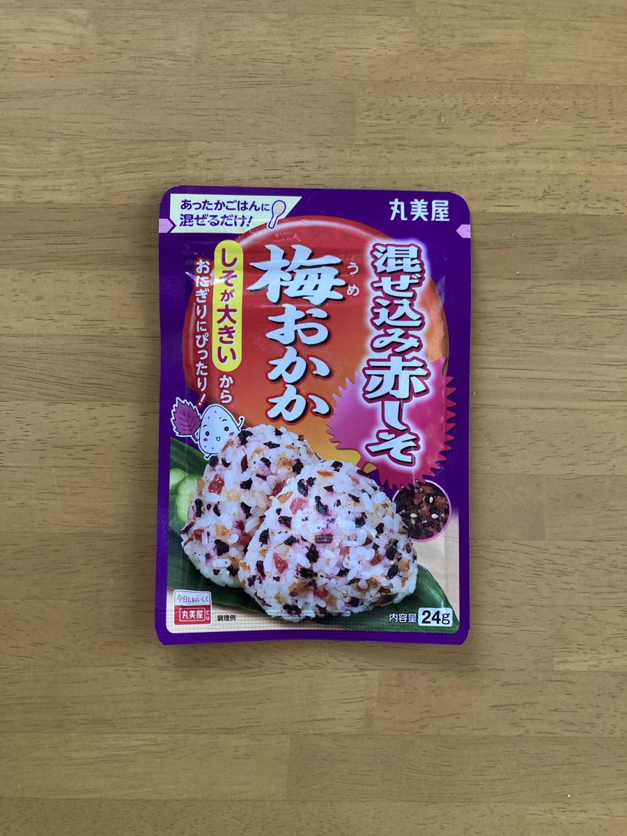 混ぜ込みわかめはリピートしていますが、おかかは初めてなので興味があって買ってみました。梅がさっくり食感がよく、赤しそは大きめで、おかかのうまみたっぷり、ごはんによく馴染みます。色合いがキレイでお弁当にいれるととても華やか、冷めてもおいしいので重宝します。温かいごはんにはふりかけていただいてもおいしくいただけました。こちらもわかめと同様常備しておきたいと思います。