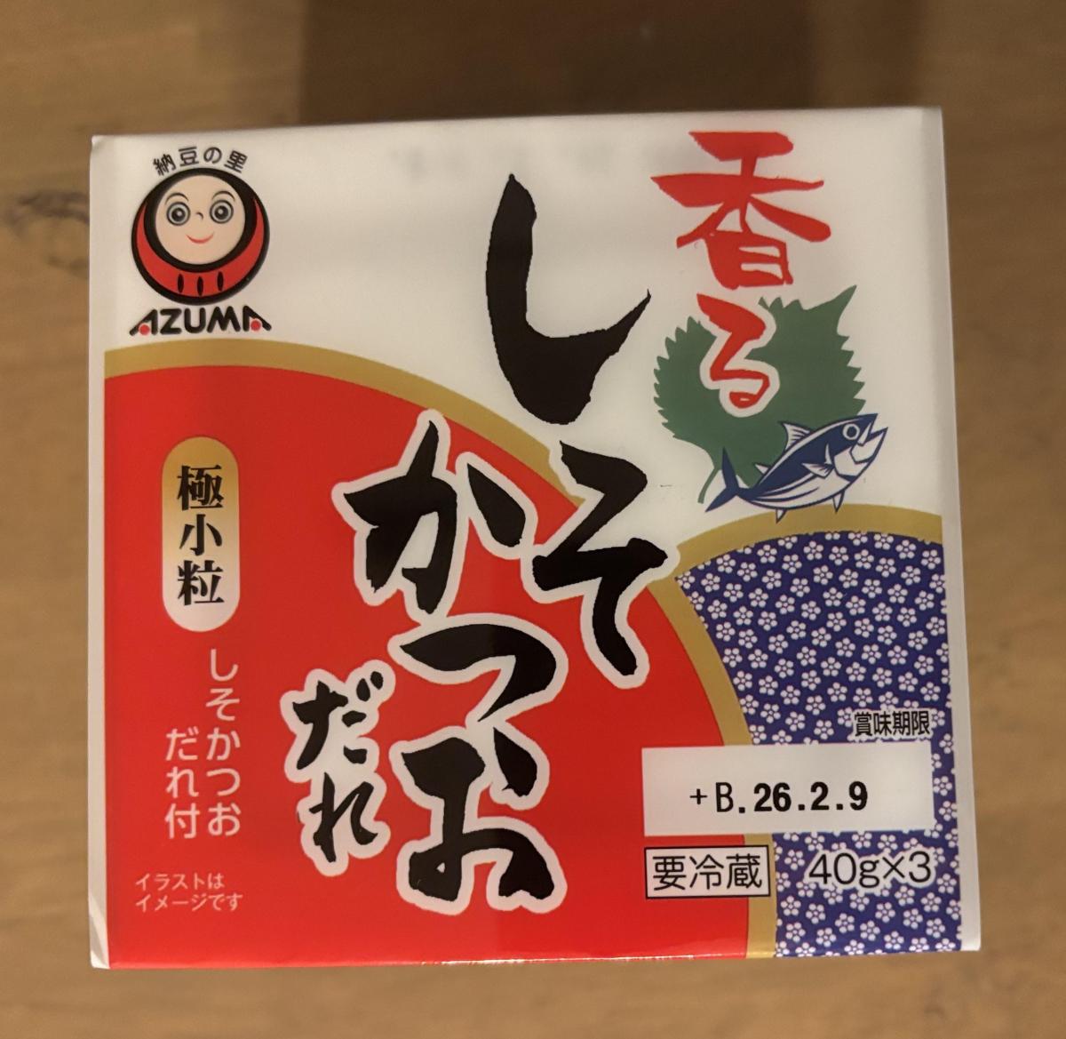 しそかつお味のたれ…!想像してみておいしそうと思いました。契約栽培された極小粒大豆が100%使用されています。たれの色は薄めですが、しそとかつおの香りがします。やさしい味で、後味はすっきり。もちもちとした食感の大豆でごはんとの相性も良いです◎朝からでも食べられる味に感じました。