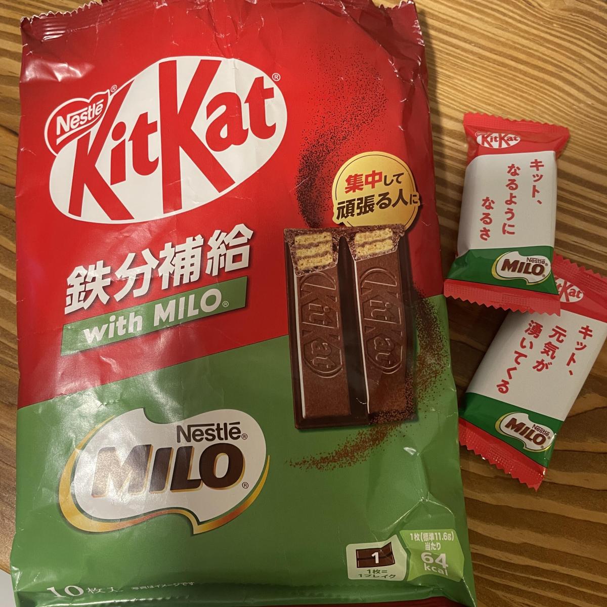 昔よくミロ飲んでいたので、キットカットのチョコレート部分がミロの味になっていて懐かしかったです。お手軽に鉄分補給ができるので、仕事や家事の合間のおやつに良いと思いました。個装の袋に書かれたメッセージにも元気をもらえます!