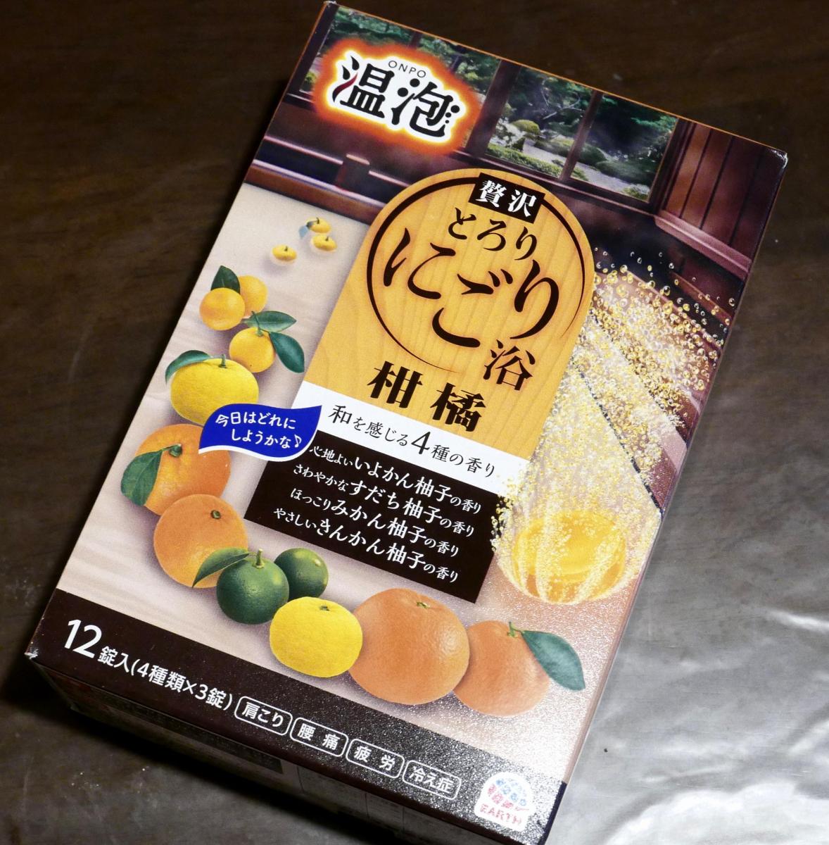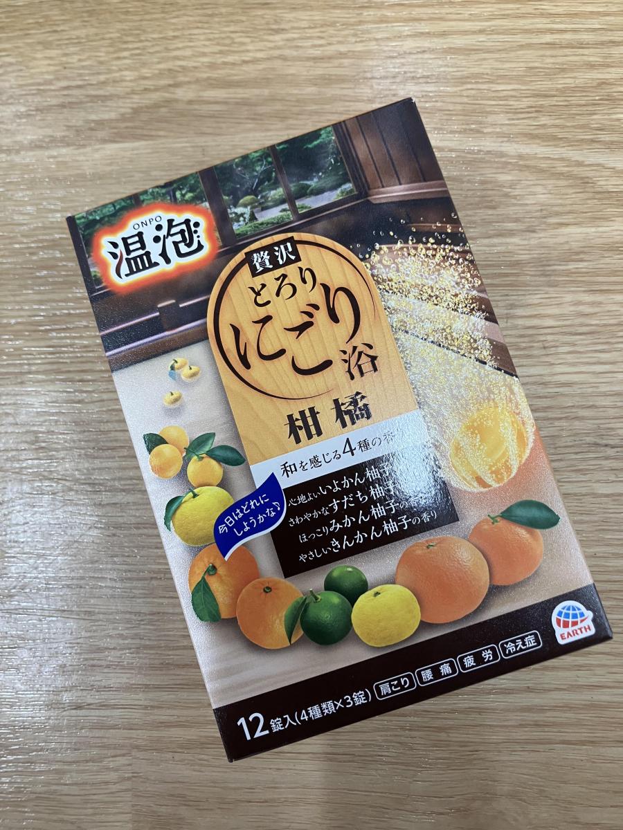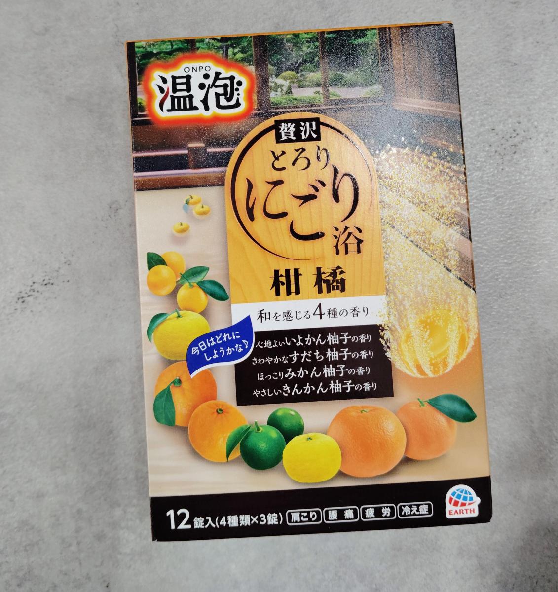 とパッケージに書かれているのを見てはほっこりします。和を感じる4種類の柑橘(柚子)の香りで濁り湯タイプです。まるで本物の果実に近い香りがして入浴時間が楽しいです。