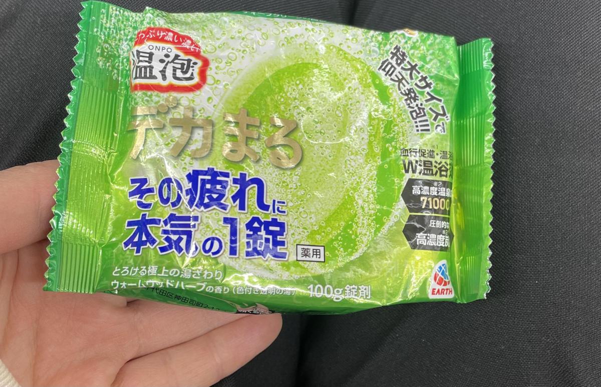 大きくてインパクトある入浴剤のデカまる第二段目!!以前ジンジャーを購入してとても良かったので今度はこちらの緑が綺麗なほうを購入してみました。やはり大きい、重さもしっかりとあります!溶かしてみるとお風呂のお湯が透き通ったグリーンに染まっていきとても綺麗で癒されました。溶けると同時に森林の中にいるような爽やかな香りも広がりとてもリラックスできました。体もポカポカとよくあたたまり、体の疲れもとれたので本当に良かったです。今後も贅沢なお風呂タイムの時にはリピートしたいなあと思います。