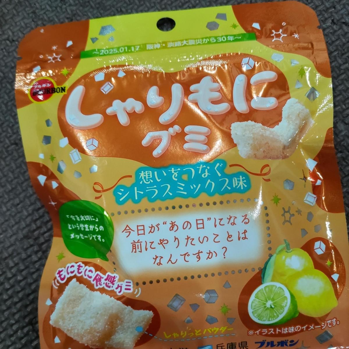 シャリもにグミのシトラス味です。柔らかくてシャリっとしています。シトラスが爽やかです。柑橘系だけど酸っぱすぎないところがよかったです。