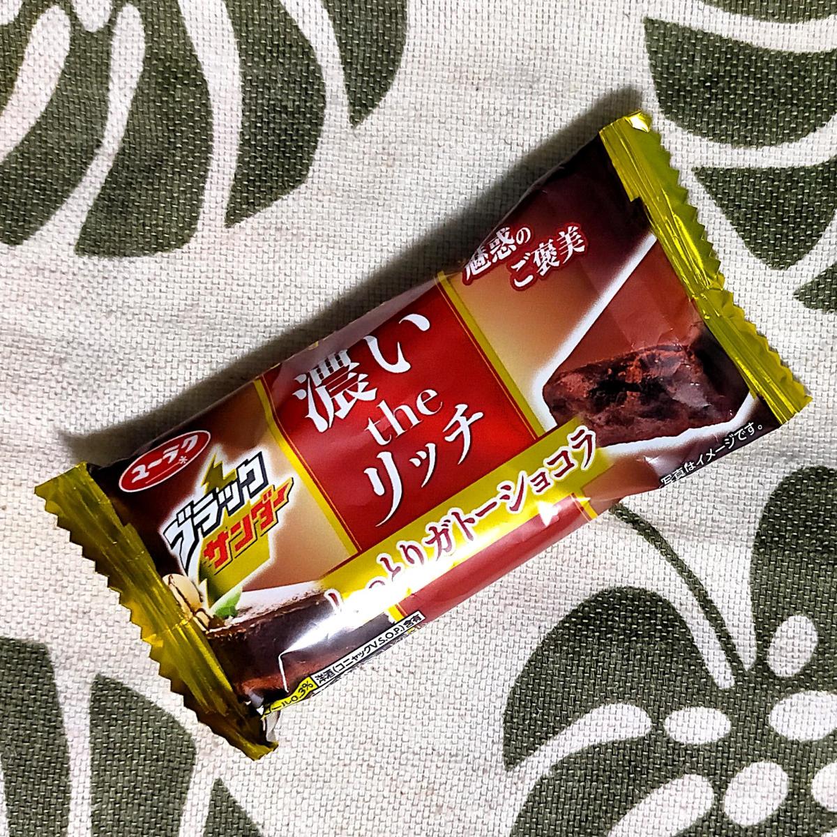 以前にもブラックサンダーのガトーショコラがありましたが、今回はものすごく濃密で食べ応えがありました。プロテインバーを思わせるような固さで、しっとりしていつつ、非常に詰まっている生地でした。(もちろん、プロテインバーのように口の中の水分を持っていかれはしませんが) チョコ味が濃厚で、甘さも強めで、ほんのりお酒の風味がしていて、かなり本格的な味わいでした。小さめサイズですがものすごい満足感でした。コンビニでお手頃価格でこのおいしさを楽しめるのはお買い得です。