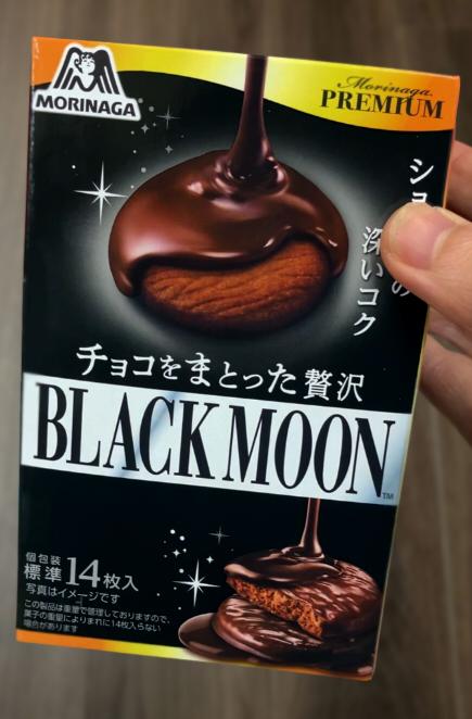 以前販売されたチョコにそまった贅沢ムーンライトがリニューアルされたものだと思います。なめらかでおいしいチョコレートでココア生地のムーンライトを包んだクッキーです。ブラックムーンよりだいぶドライに感じるんですが薄いのでオリジナルのブラックムーンよりさくさく香ばしくてややドライに感じるのかもしれません。チョコをまとったムーンライトとローテで買いたい商品です。