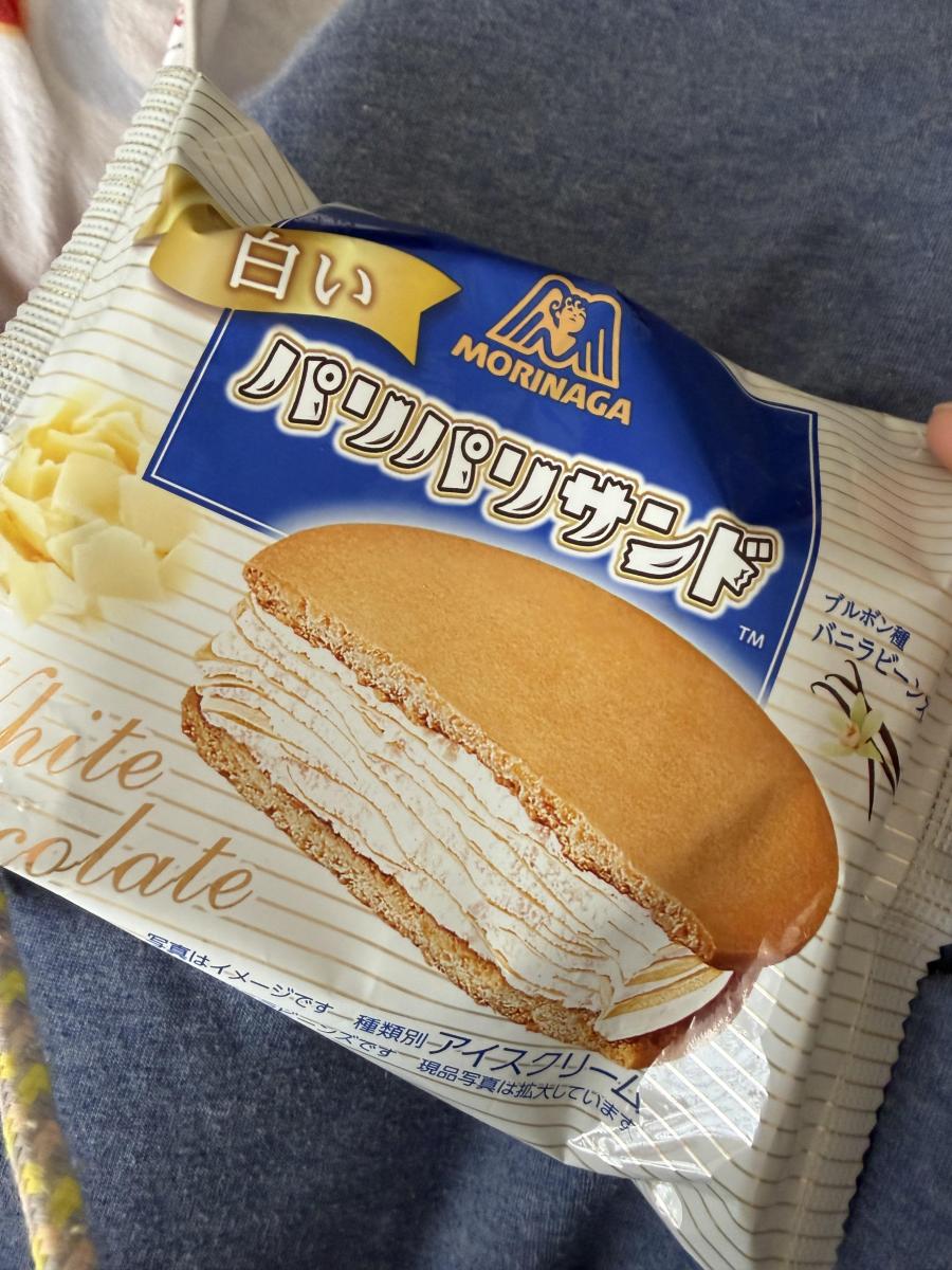パリパリなホワイトチョコの食感が楽しく、おいしいです。クッキー生地はしっとりしていて、バニラアイスとよく調和しています。