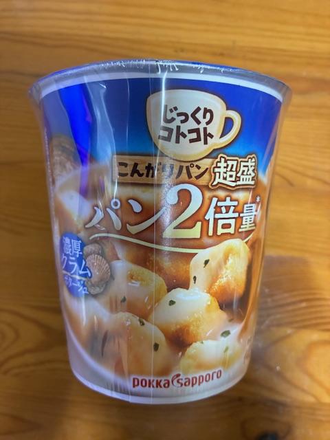 このシリーズではこれまでジャガイモポタージュ、コーンポタージュを食べましたが、このクラムポタージュが3つの中では一番おいしかったです。もちろんパンのボリュームには大満足。