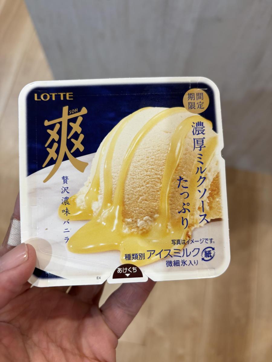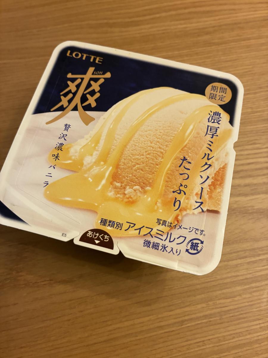 シャリッとした軽い食感が魅力の爽ですが、その魅力はそのままに、絶妙な濃厚さがプラスされているのがとても良かったです。軽やかでありつつ満足感のある濃厚さが楽しめるという、クセになる美味しさでした。