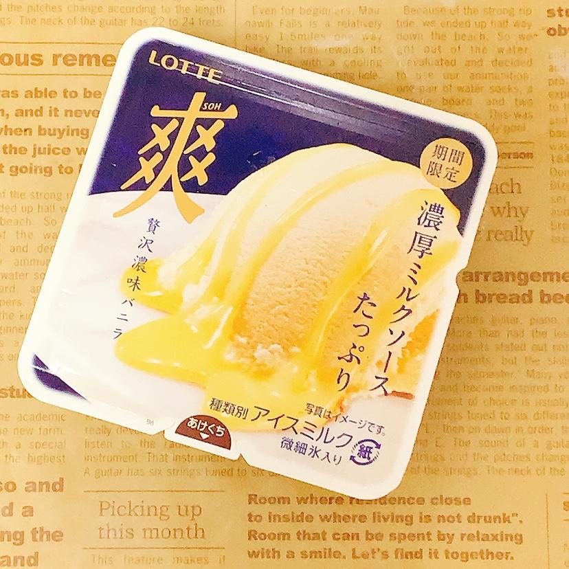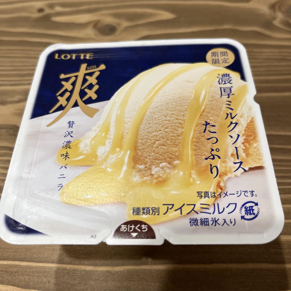 正直、爽のシャリシャリ感が苦手であまり購入してなかったのですが、濃厚と贅沢バニラのパッケージに惹かれて購入しました。シャリシャリ感が少なく濃厚なバニラソースとアイスが合わさってとても美味しかったです。