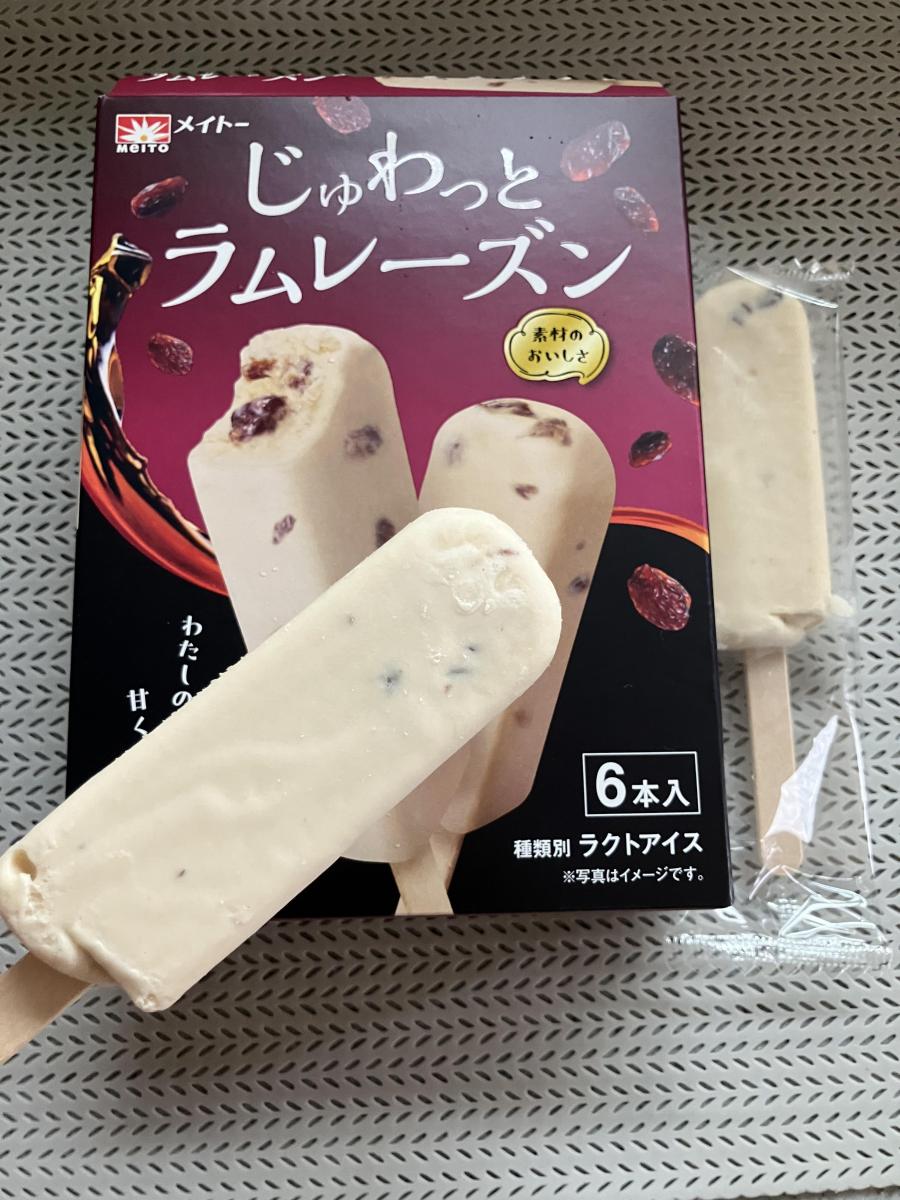 大きくはないパータイプのアイスですが、割と濃厚で、芳醇なラムレーズンの風味が口いっぱいに広がります。なので、1本でも比較的満足感が得られます。