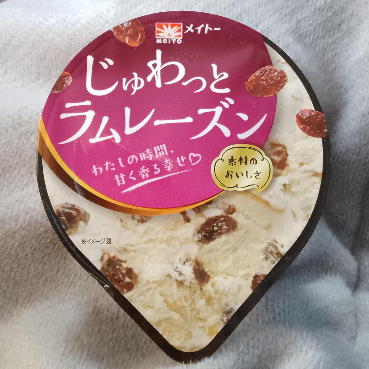 ラムレーズンが大好きで、じゅわっと、というは名前に惹かれて購入してみました。クリーミーで柔らかめなアイスの中にラムレーズンが入っており、小粒なのですがラム酒の味がしっかりとレーズンついていてとっても美味しかったです。欲を言えばレーズンの個数が少なく感じてしまったのでもう少し多めに入っていたらもっと嬉しかったです。