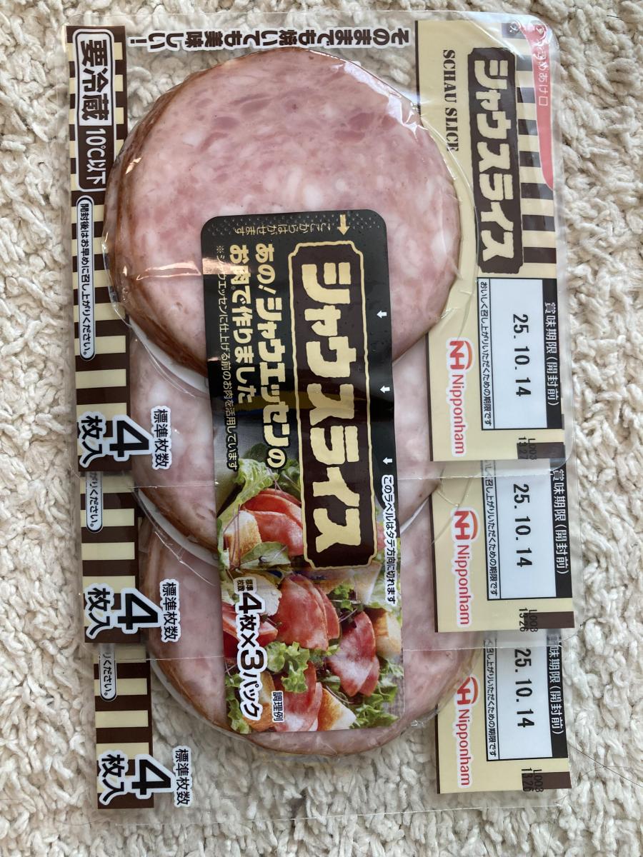 シャウエッセンのお肉で作ったとかで珍しいとお思い買ってみました。薄〜くスライスされてますけど、味はしっかりしてて美味しいです。刻んで炒飯とかに入れても美味しいけど、ハムエッグにしたらめちゃウマでした!ふつうのハムパックと値段もそう変わらないので、これからはこちらの出番が増えそうです。
