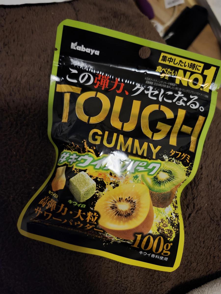 タフグミは、弾力のある噛み応えで、心を鎮めたいようなときなどに、噛むとすっきりするので、時々食べています。