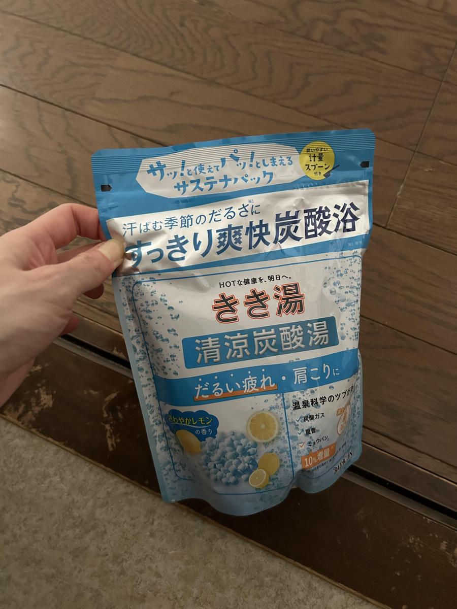 ドラッグストアで入浴剤を探していたらきき湯シリーズの清涼炭酸湯 さわやかなレモンが通常よりチラシが価格で少し安くなってたので購入してみました。爽やかなクリアブルーとレモンの香りで爽やかな感じで入浴出来てよかったです。
