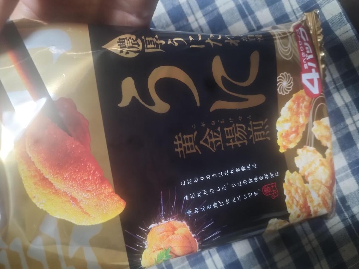 揚げ煎餅はさまざまなバリエーションがありますが、これは珍しいうに風味の揚げ煎です。ザクっとした食感とうにの風味、ほどよい塩加減があり、美味しいです。