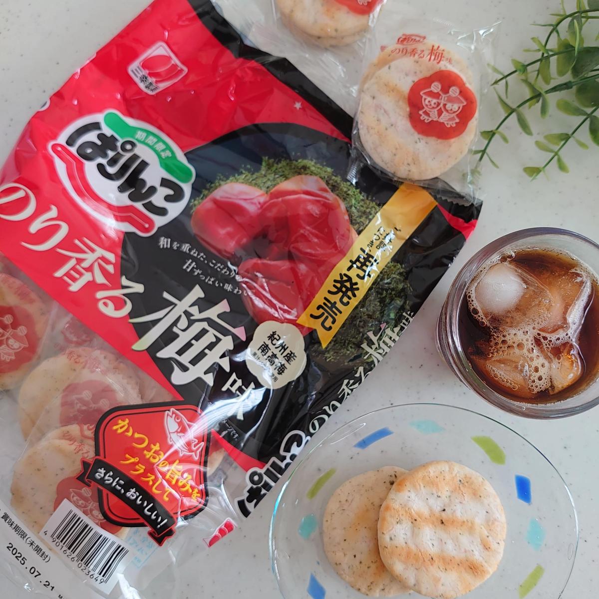 ぱりんこ のり香る梅味が大変気になり購入してみました。小分けされているのでシェアできて大変便利です。袋開けると、梅としそと海苔の甘酸っぱい香りが漂い酸っぱい好きには食欲がそそります。いつものぱりんこ同様サクサクと軽い食感がよくてやみつきになります。梅の酸味と、しその味わいが美味しくて海苔の味わいもしっかりと感じ大変美味しかったです。