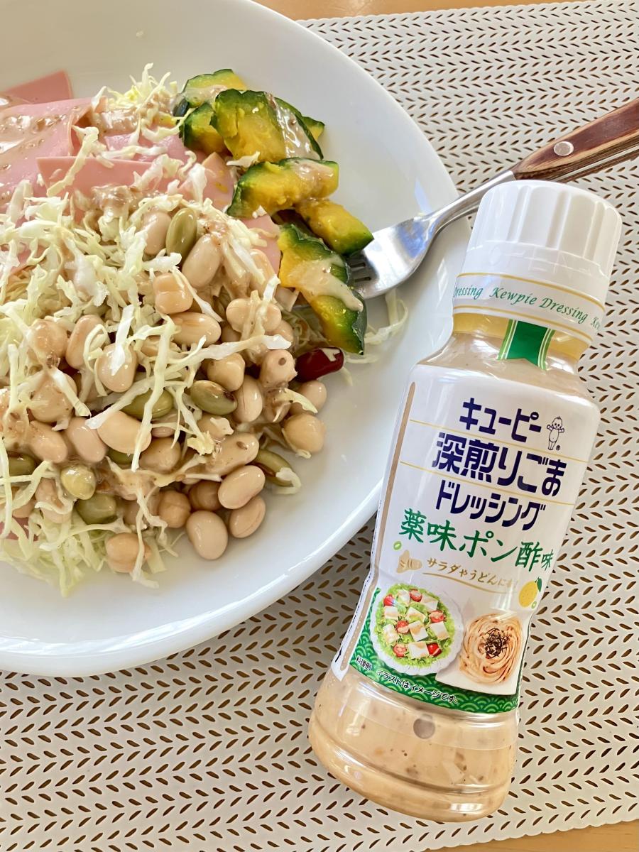 キューピー深煎りごまドレッシングの薬味ポン酢。薬味が好きなのと春夏限定の文字に惹かれて購入。