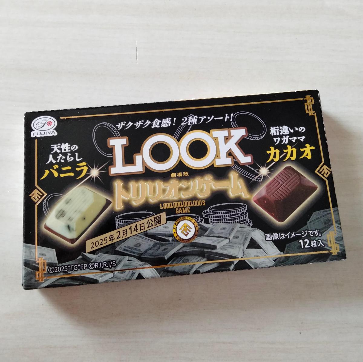 限定味のルックでいつもよりパッケージの色合いが格好いいので気になり購入してみました。2種類の味が入っています。食べるとホワイトはザクザクした食感が大変いいです。バニラの風味もよくミルクチョコは甘みがありますが、相性は抜群です。カカオの方もサクッとした食感で甘さが抑えられたチョコレートで交互に食べると大変美味しいです。