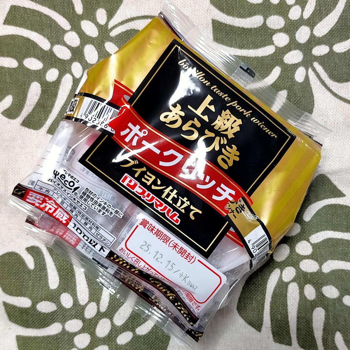 プリマハムの上級あらびきポークリッチは少し小ぶりのウィンナーソーセージですが、食べるとプリットしていて、中からはブイヨン仕立ての肉汁がじゅわっと出てきてとても美味しいです。