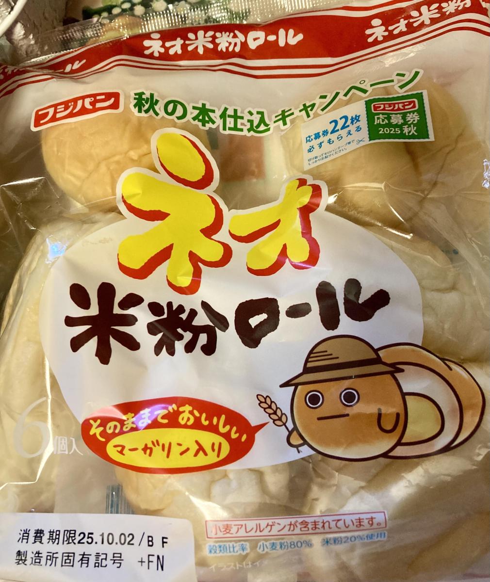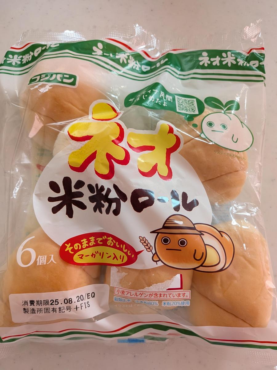 フジパンのネオロールのパッケージが変わったのかと思ったら、新商品でした。米粉らしいもっちりとしたパン生地で、ほんのりと甘く、マーガリンの塩気とよく合います。そのままでおいしいと書かれていますが、軽くリベイクすることで、米粉の香ばしい香りが楽しめます。