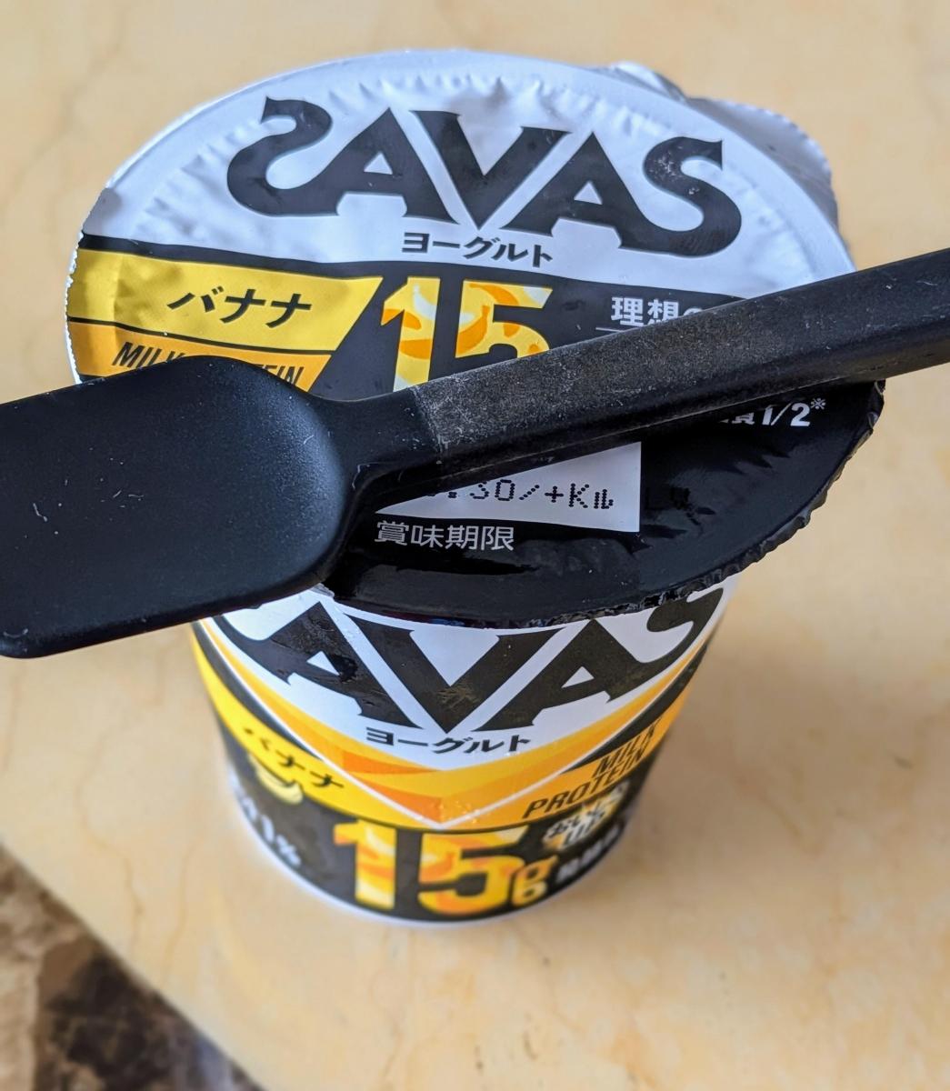 バナナの風味を感じられるヨーグルトでやや固めの食感で美味しかったですね。1個でたんぱく質が15グラム摂れるのは嬉しいです