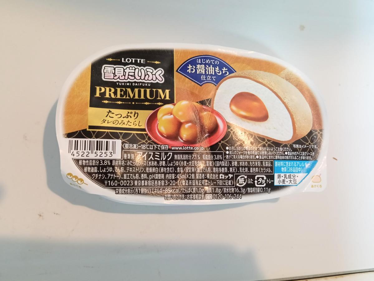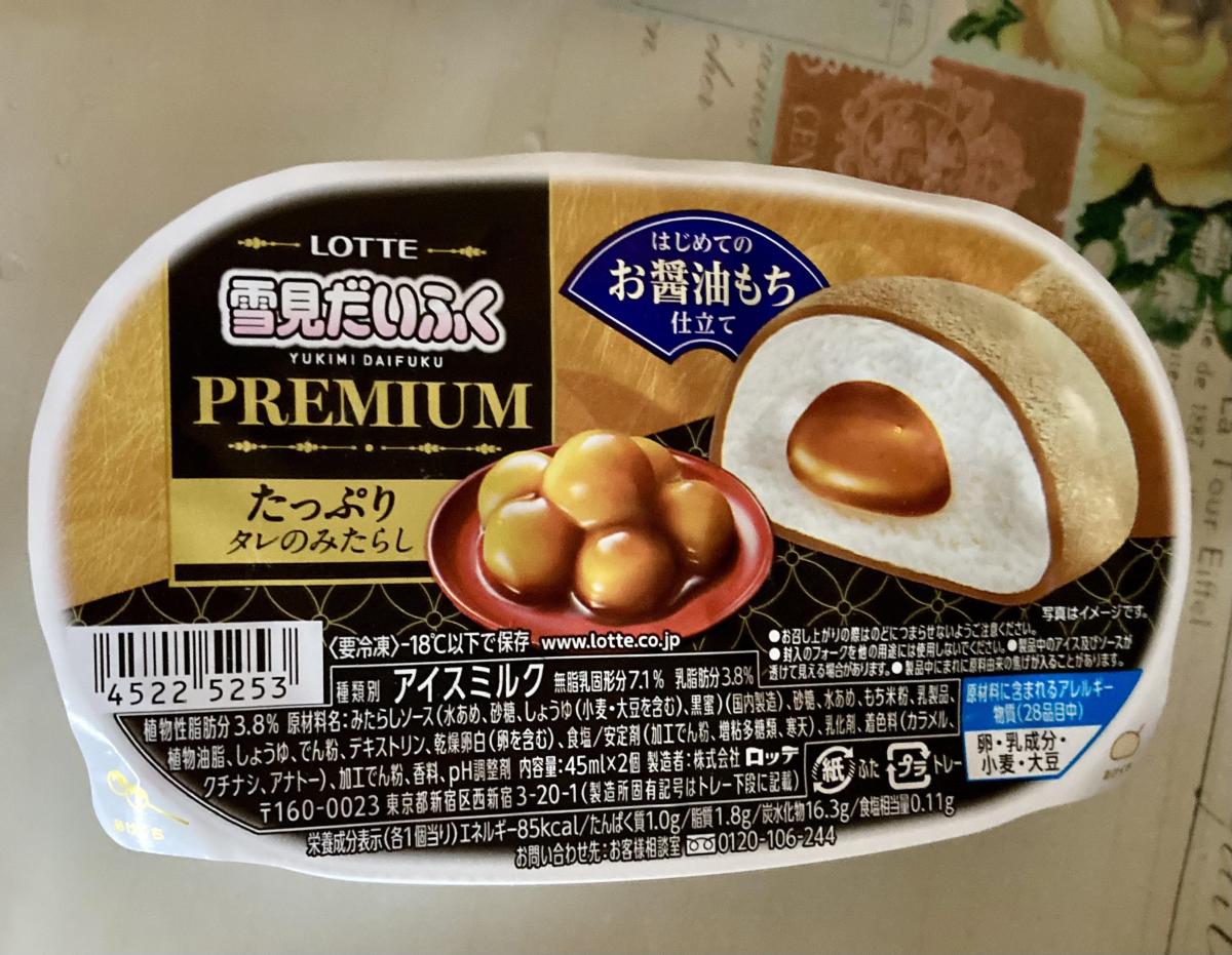 PREMIUM たっぷりタレのみたらしのネーミングに惹かれてどんな味か試したくなり購入してみました。少し置いてから食べると外側のお餅はモチモチで柔らかく外側のおもちも、みたらしっぽい味がします。トロっとしたみたらしタレはほんのり醤油味で甘じょっぱくて結構濃厚な味わいです。バニラアイスの甘みとおもち、みたらしダレのしょっぱさの相性が抜群でした。