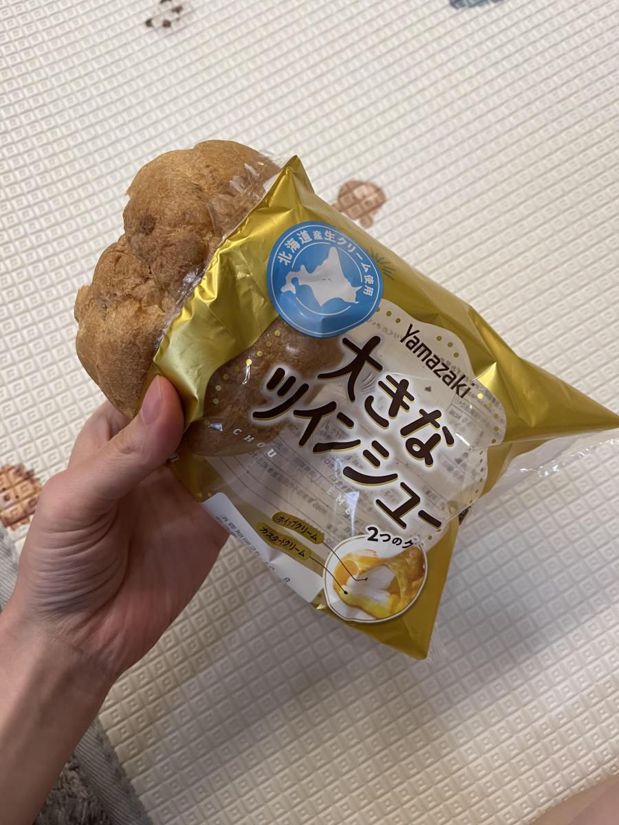 大きなツインシューという名のとおり、大きめサイズのシュークリームです。値段はお手頃価格で、私が購入したのは100円未満でした!この物価高のご時世で、大きめサイズシュークリームがこの値段なのはかなりコスパがいいと思います。