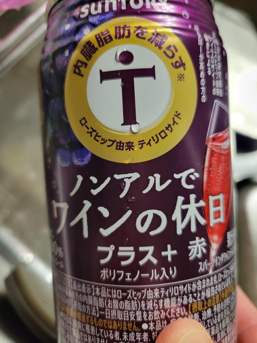 内臓脂肪を減らす、の謳い文句に釣られて購入してみました。スパークリングワインタイプのノンアル、期待もあまり無く飲んでみる。口に含んだときの赤ブドウの風味がしっかり感じる。果汁19%もあるのかとビックリ。炭酸があまり強くないので喉にスッと入っていくのは良い。舌に残るブドウの渋みが心地よい、鼻から抜ける風味も、ワイン的なものを感じます。ノンアルなので酔わないのは少し不満だが(当たり前だけど)そのクオリティは高いと思います。此れで内臓脂肪も減れば尚良いですが、其処は、美味しいと言うことで帳消しで。