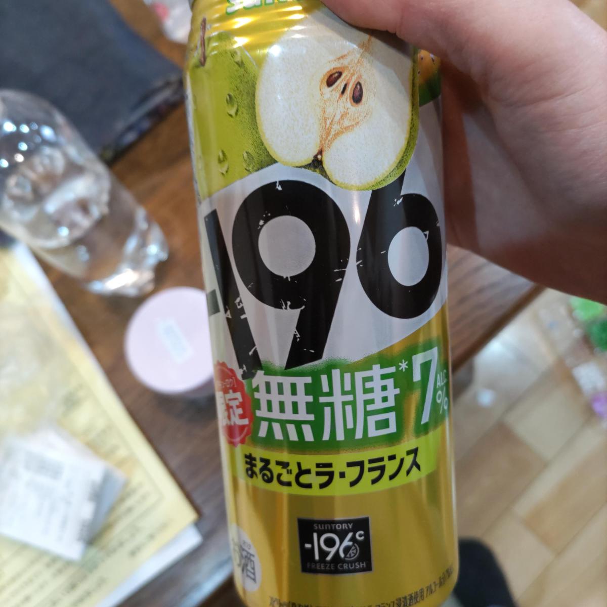 -196無糖【まるごとラ・フランス】無糖なので甘さはないんでしょうが、ラ・フランスの果汁の旨みと甘さが口いっぱいに広がりめちゃめちゃ飲みやすくて、久しぶりに「うまー」って声が出てしまうお酒でした。