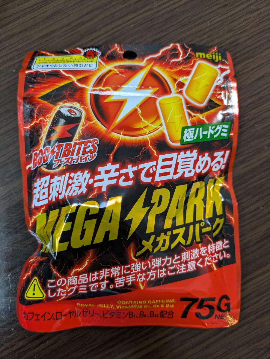 辛いグミってなに?と思って購入してみたが、本当にピリピリとした刺激がある。辛さは唐辛子的な辛さで、このグミがそういった刺激で眠気なんかを吹き飛ばそうという狙いなのだろうから、唐辛子的というのは納得できる。ピリピリとくる刺激は噛んでいる間はずっとしていて、食べ終わった後でもしばらくは残るのだが、超ハードを謳う食感とも相まって、とにかくボーっとした脳みそをシャキッとさせようという意図は感じられる。あとはこれが純粋においしいのかと問われるとそこは「うーん」という感じで、とにかく特定の目的とそこに魅力を感じれば、というグミかなとは思った。
