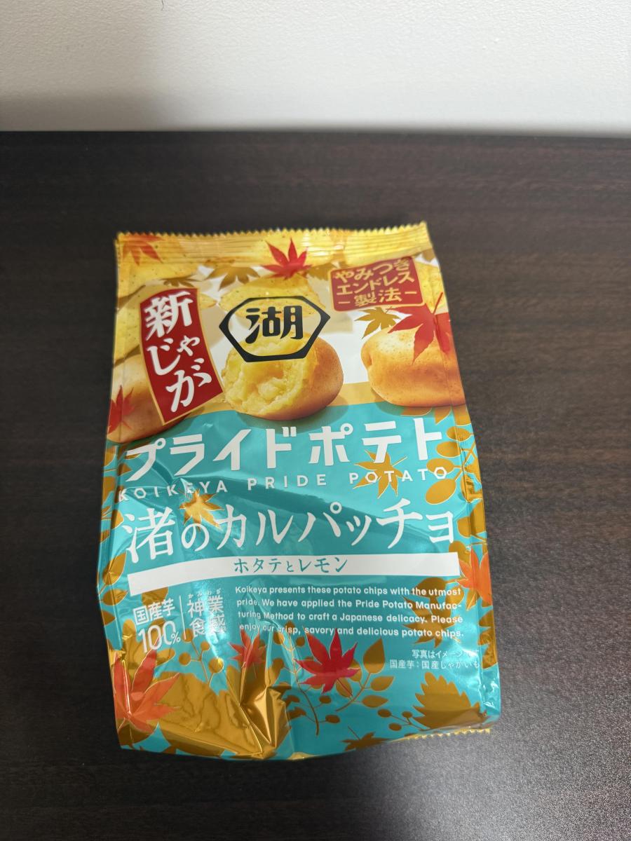 爽やかなパッケージが目に止まりました。渚のカルパッチョというネーミングも面白い。爽やかレモン味が美味しいポテトチップスでした。夏らしい。ホタテはちょっとわからなかったけど何かしらの旨味が感じられて美味しかったです。