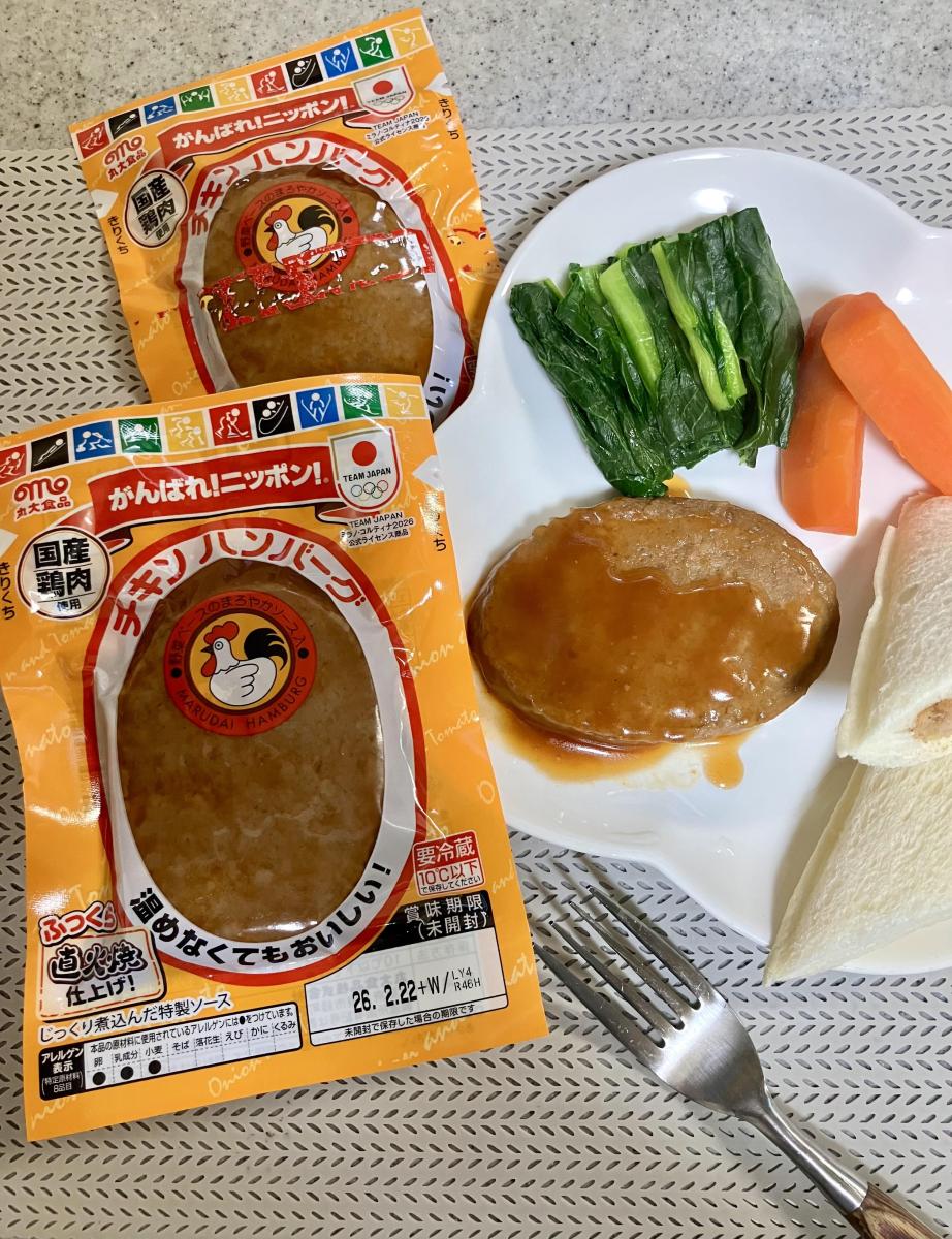 温めなくてもそのまま食べられるチキンハンバーグ。