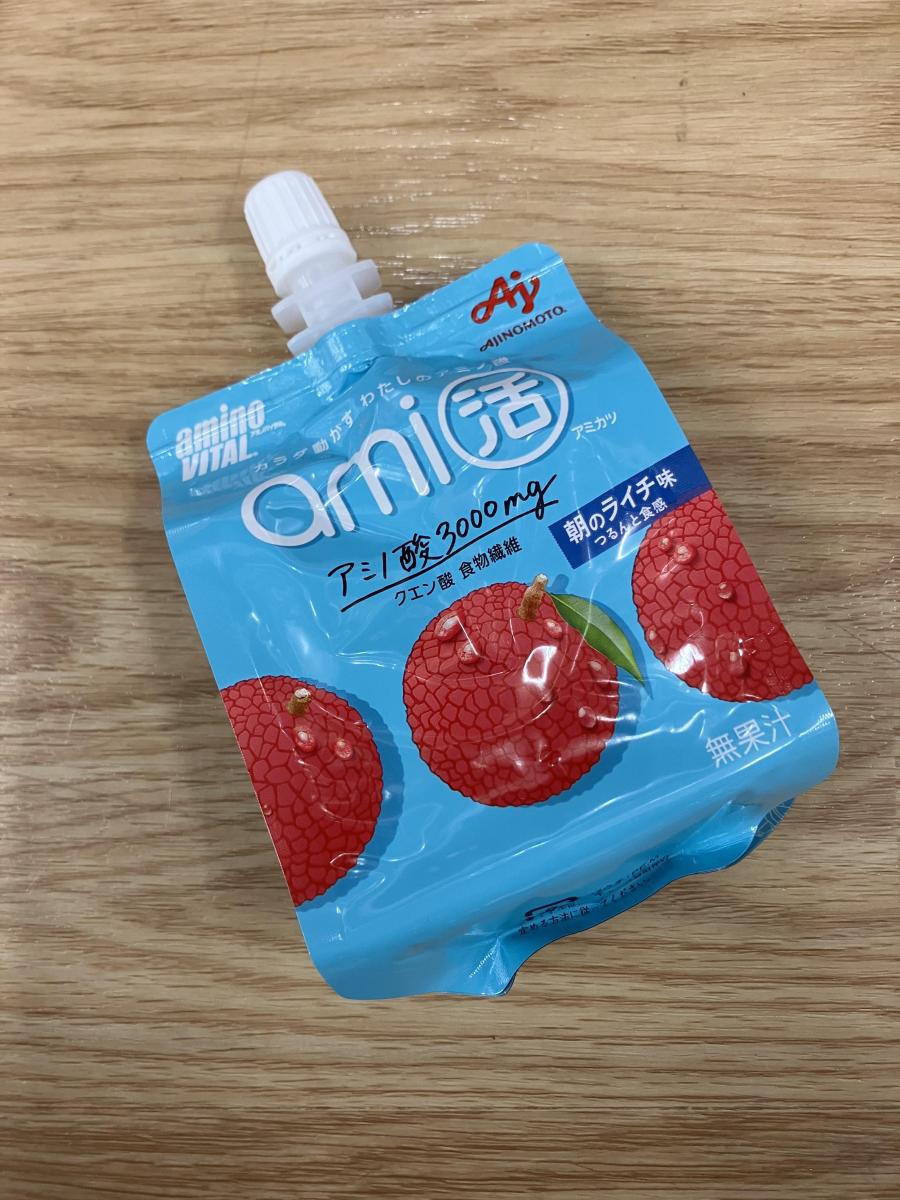 大阪万博で頂いて自分にあってるんだと思ったのと、ライチ味はゼリー飲料で珍しいし美味しかったのでまた買いました。運動はしないけど、アミノ酸3000mgはなんとなくいいような気がして飲んでます。少し硬いので押しながら食べないといけないので口がちょっと疲れます。ライチの香りもいいし、朝や昼のちょっと足りない時の足しにいいかと思っています。
