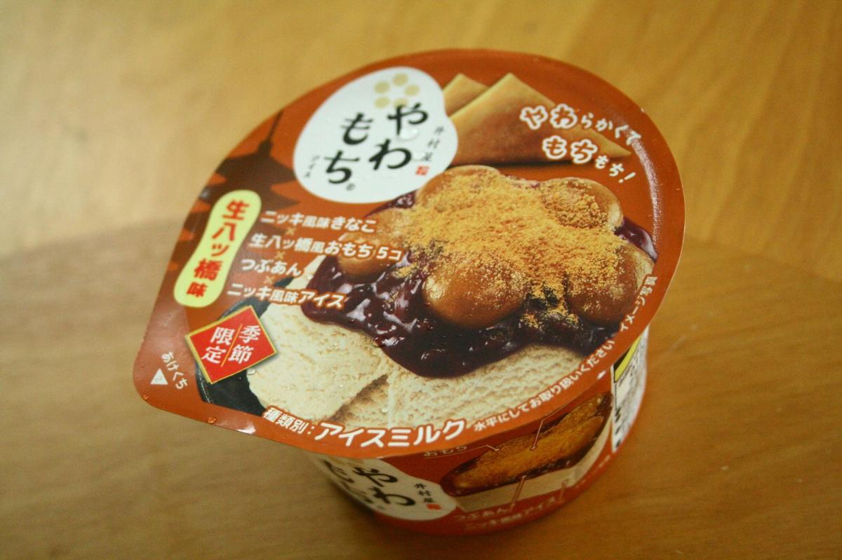 八ツ橋の味のアイスというのが珍しくて買ってみました。八ツ橋におもちにきなこにつぶあんに盛りだくさんなアイスでおいしかったです。もちもち八ツ橋でクセになりそうです。