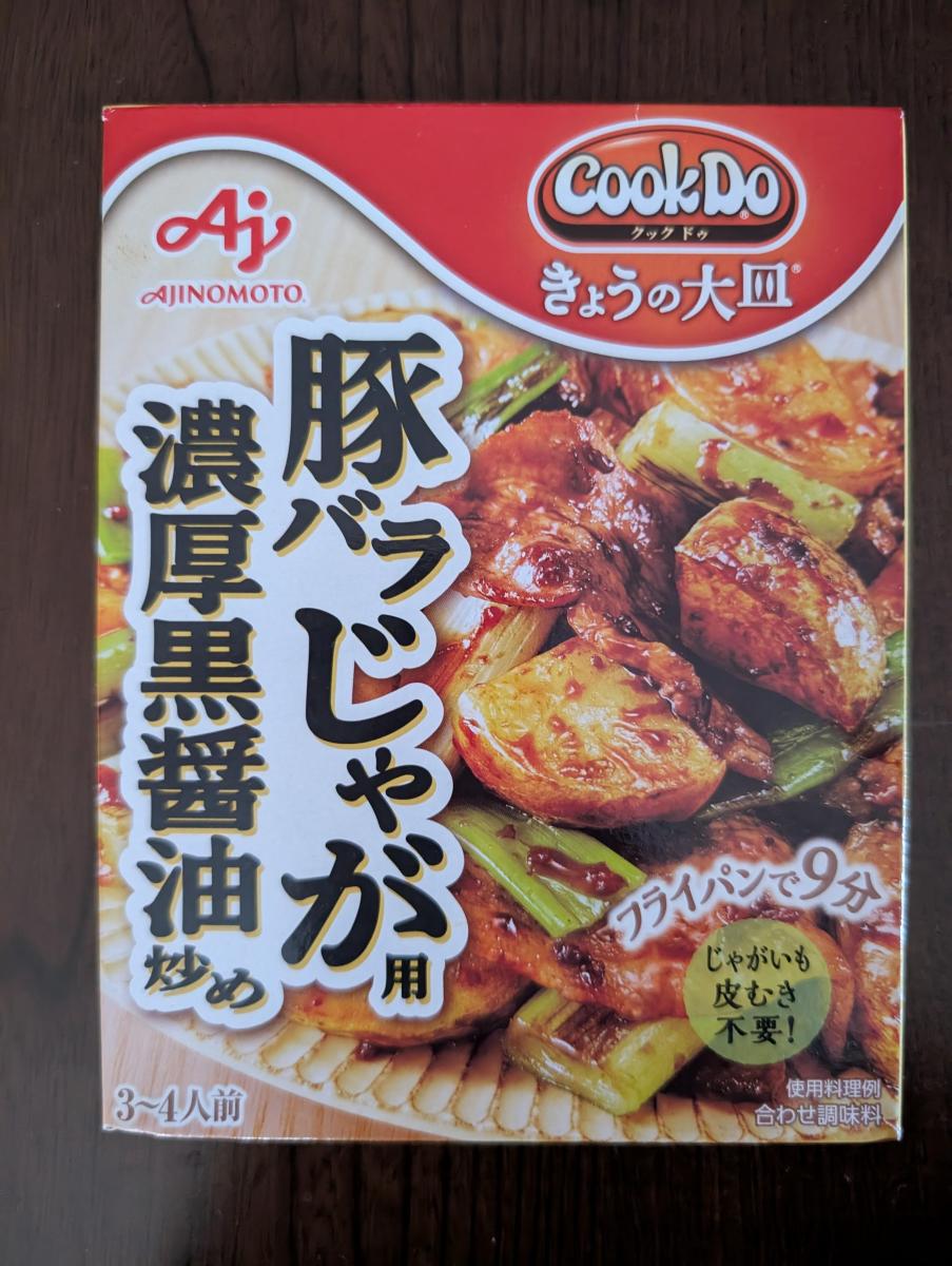 豚バラとじゃがいもとネギを炒めてコレを絡めるだけで、簡単にご飯に合う美味しいおかずが作れます。じゃがいもは皮剥き不要ですが、今回は、新じゃがではなかったので皮を剥いて作りました。濃いめの醤油味が具材によく絡んで簡単でとてもおいしいし、白米に合うお味です。豚バラ、じゃがいも、ネギ、は比較的ウチには常備してある食材なのでとても便利です。