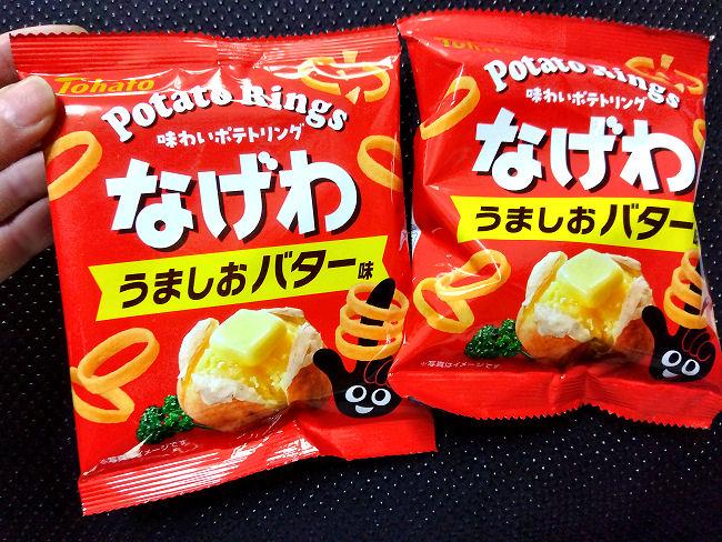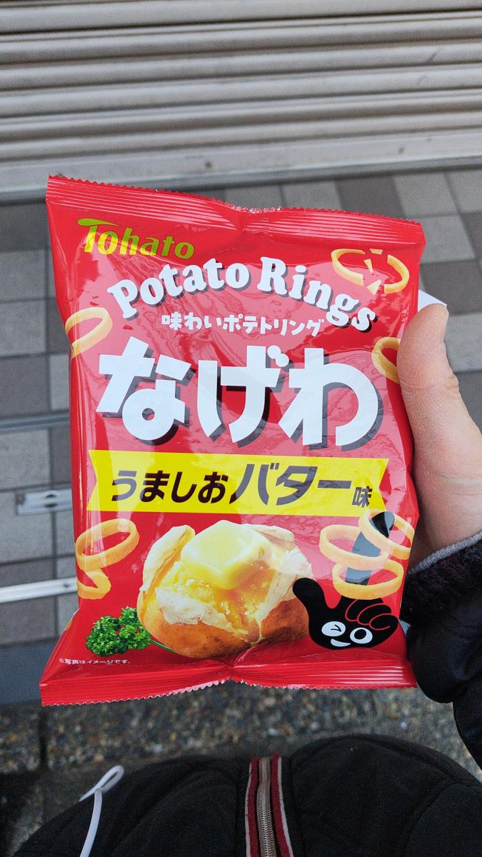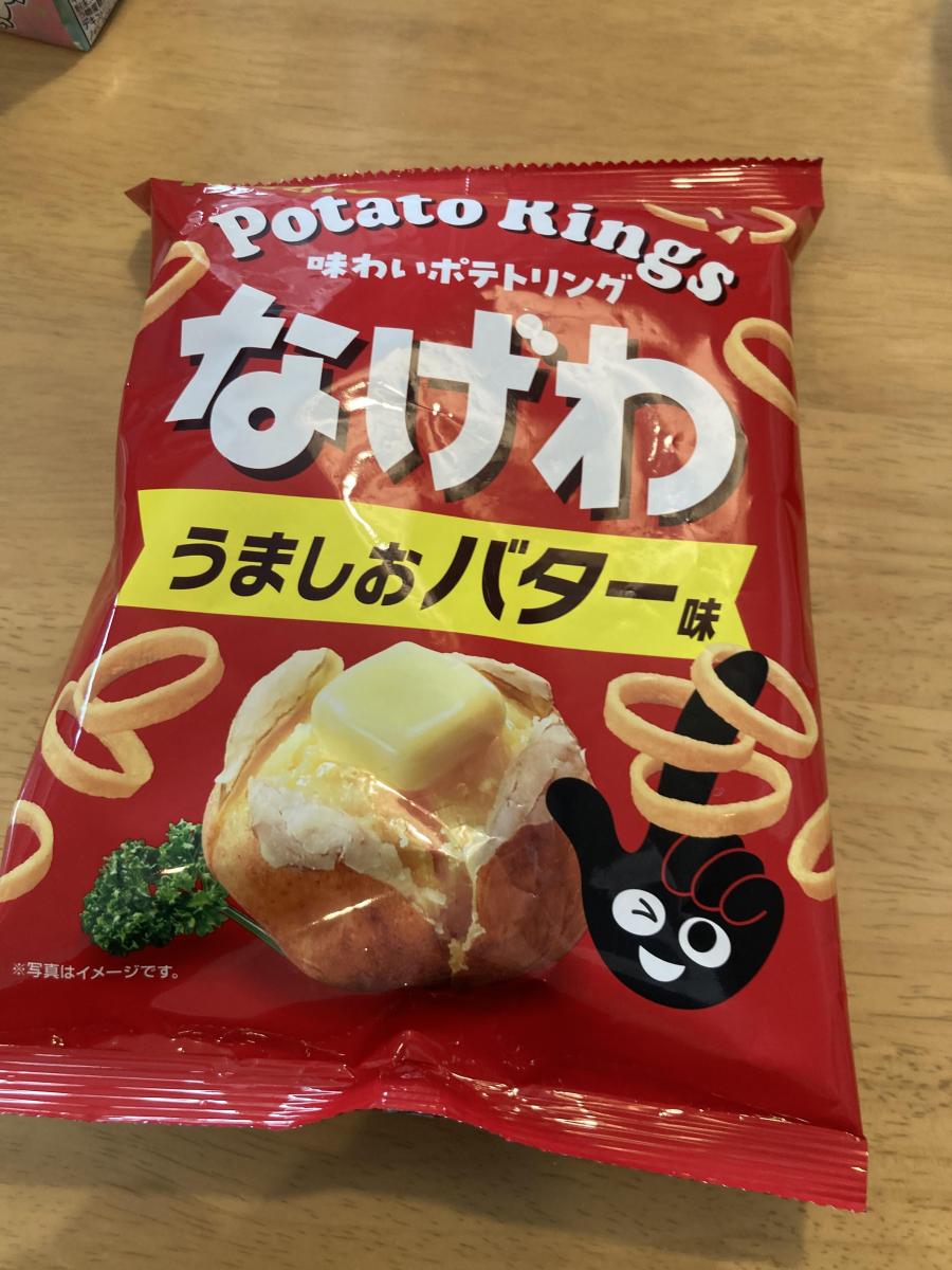 輪っかの形が面白いポテトスナックです。ポテコに比べると厚みがあまりなく、むしろ食べやすいですね。こちらのフレーバーについては、バターの風味が美味しいです。